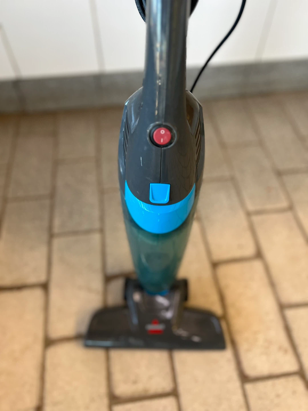 This is a Bissell stick vacuum. It's lightweight and easy to manoeuvre. Great for quick cleanups around the house!