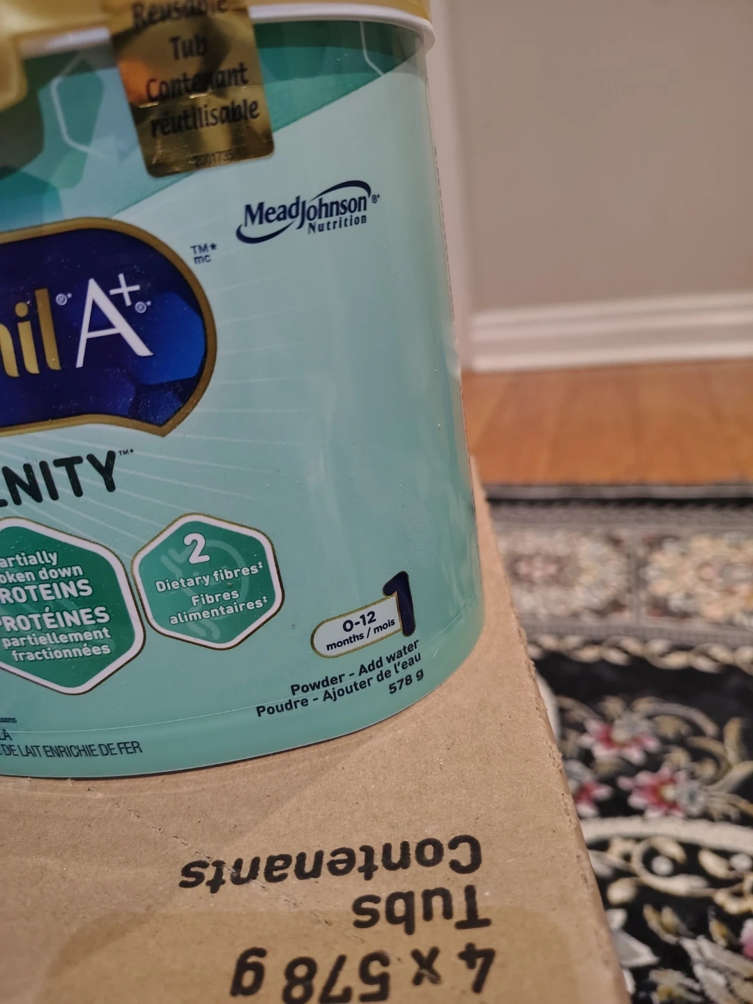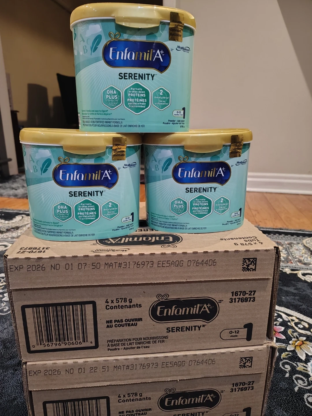 This Enfamil A+ Serenity formula is designed for babies aged 0-12 months. It contains DHA Plus and partially broken down proteins for easier digestion. Each tub contains 578g of powder. Expiry Date: 2026.