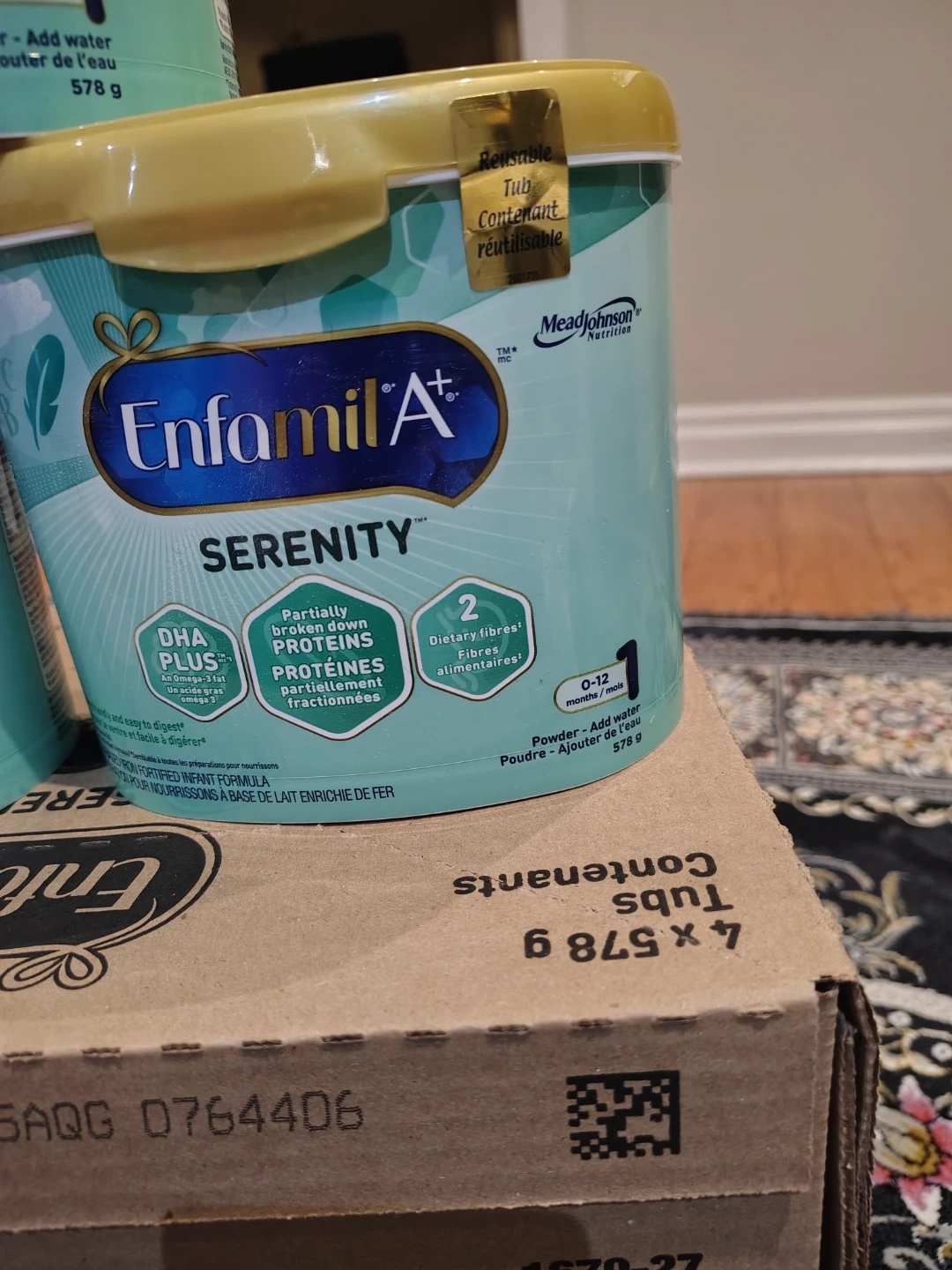This Enfamil A+ Serenity formula is designed for babies aged 0-12 months. It contains DHA Plus and partially broken down proteins for easier digestion. Each tub contains 578g of powder. Expiry Date: 2026.
