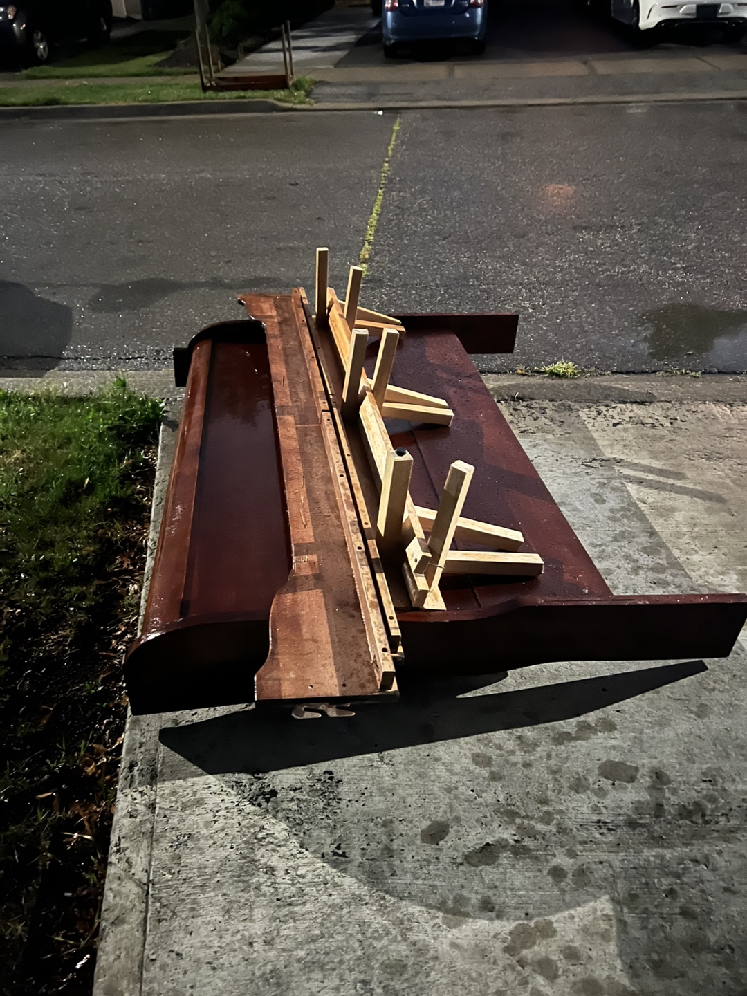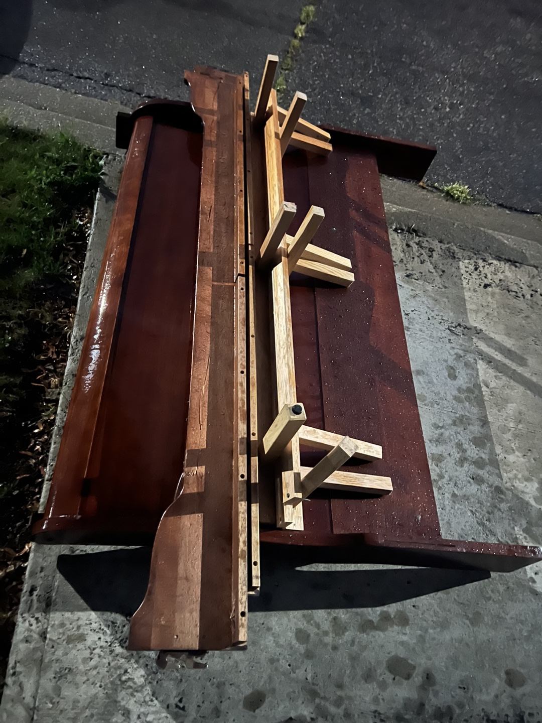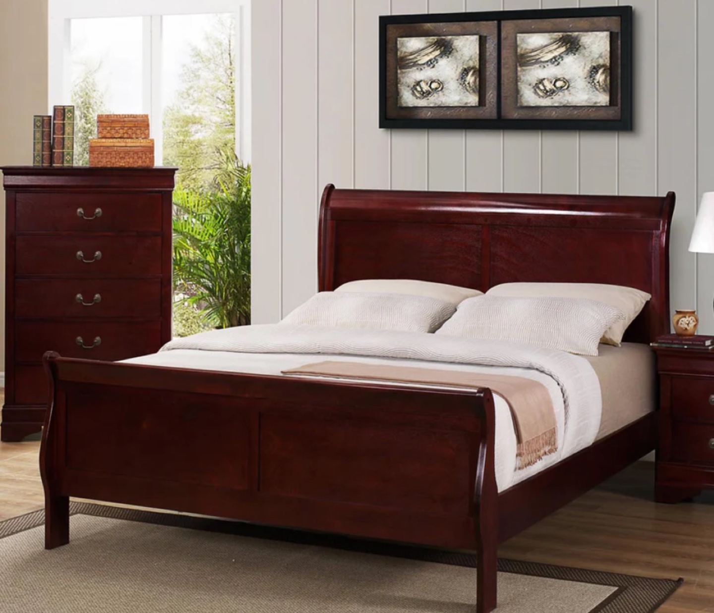 Selling a queen-size sleigh bed frame. It's a beautiful piece of furniture that would look great in any bedroom. This bed frame is made of wood and has a rich, dark finish. It's in good condition and ready for a new home