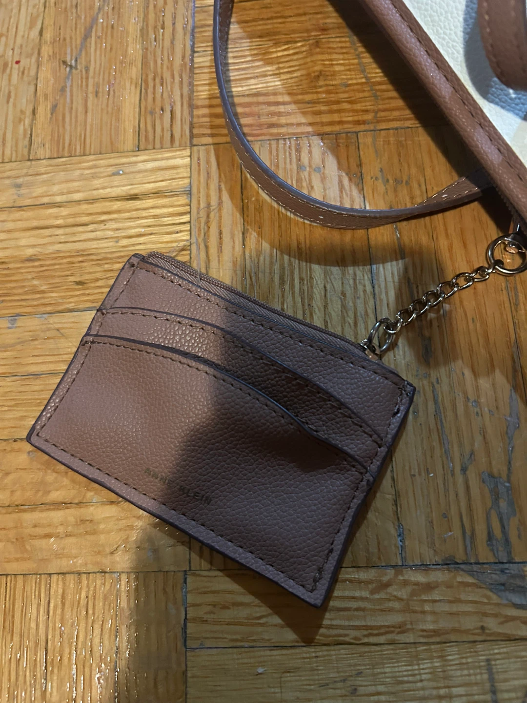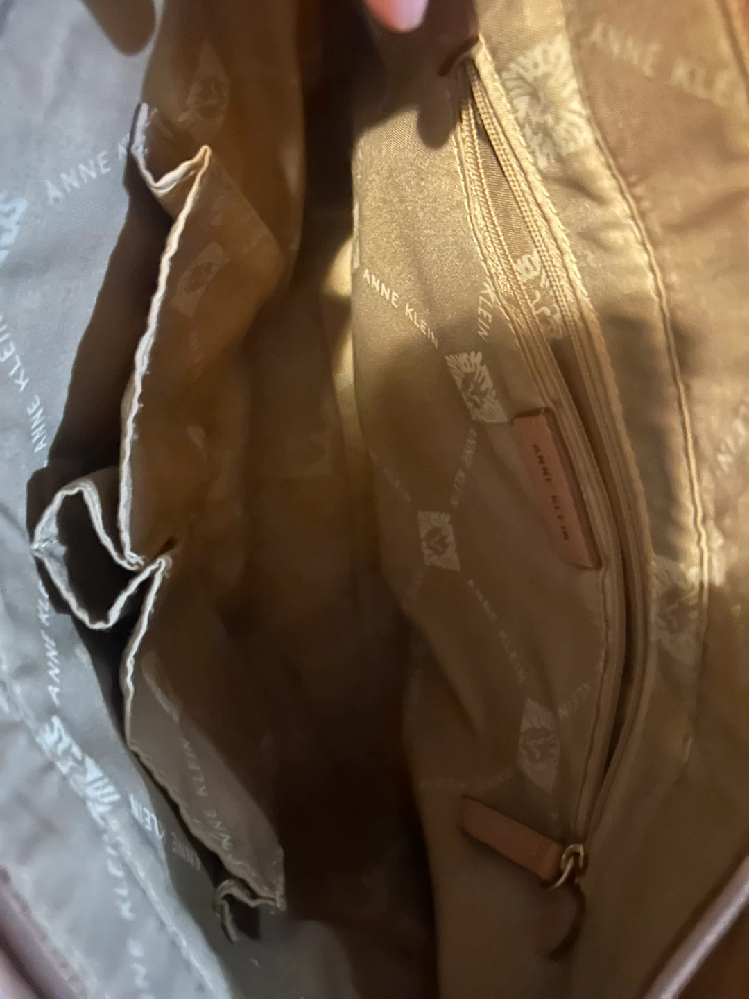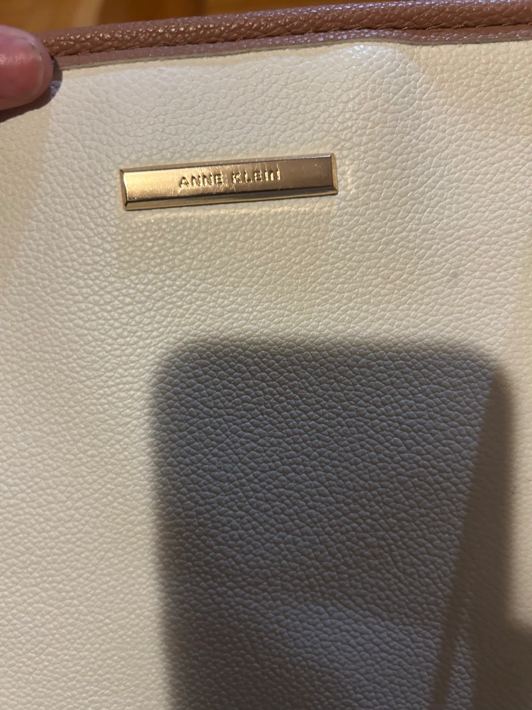 Looking to sell this Anne Klein tote bag! It's in great condition and comes with a matching card holder. The bag features a cream and brown colour scheme. Perfect for everyday use or a stylish outing!