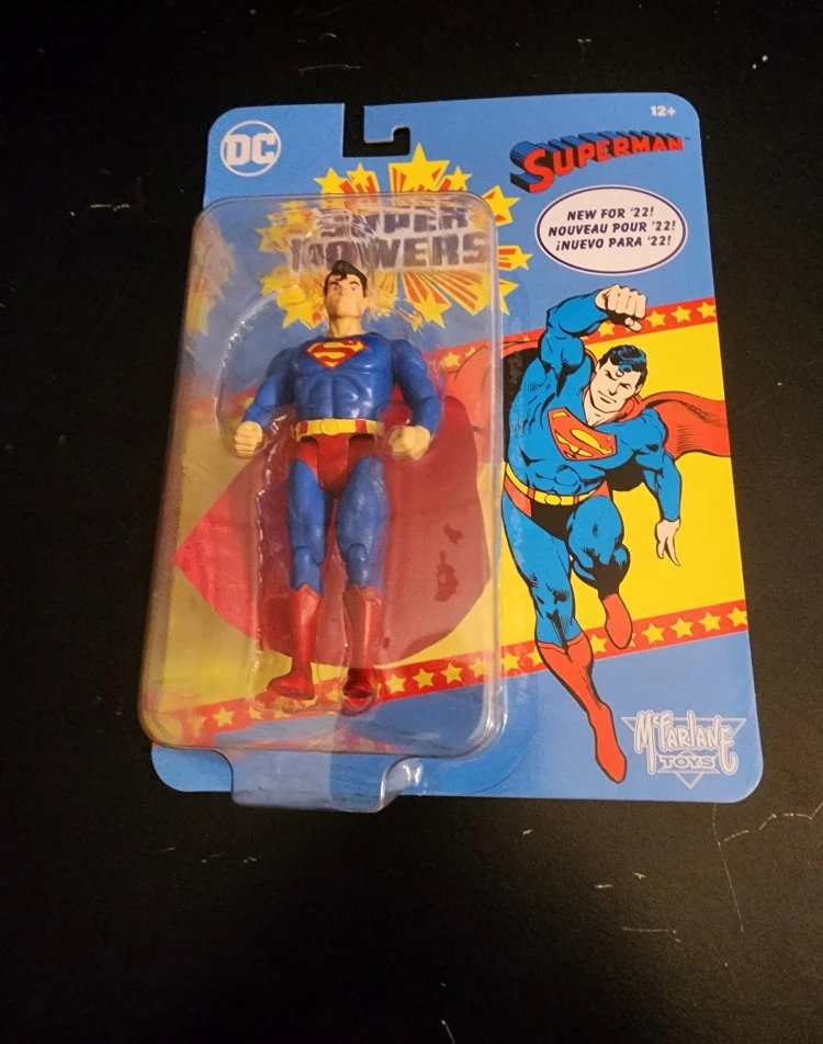 Selling a Superman action figure from McFarlane Toys' Super Powers collection! This figure is new for '22 and comes in its original packaging. It's part of the DC Super Powers line and features Superman, the Man of Steel!