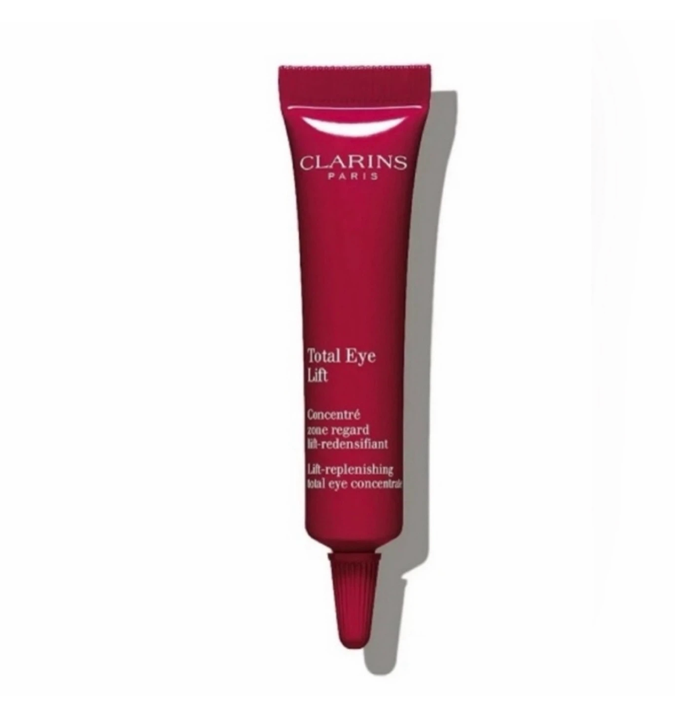 Clarins Paris Total Eye Lift concentrate for the eye area. It's a lift-replenishing total eye concentrate. This formula is designed to target the eye contour. It's great for rejuvenating the look of tired eyes!