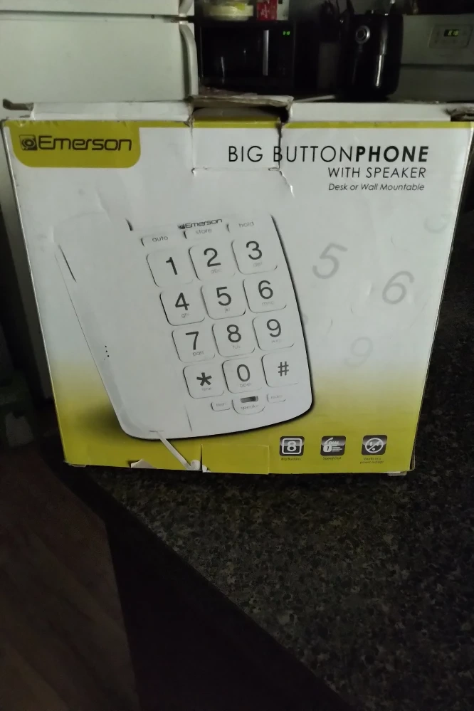 Selling a brand new Emerson Big Button Phone with Speaker! It's desk or wall mountable and comes in its original packaging.