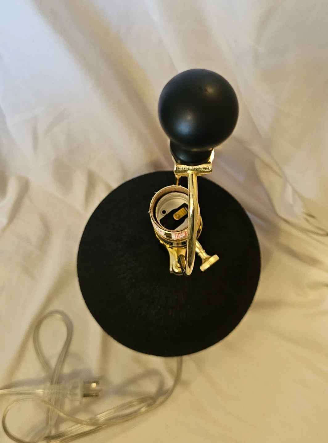 This Small Black Lamp has some wear but otherwise it is in Good Working condition.