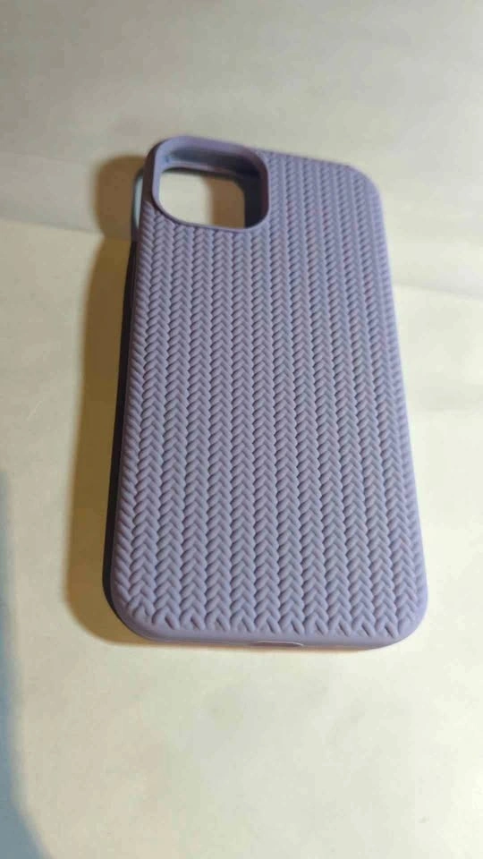 Cute light purple case for iPhone 13 or 14. Features a woven pattern braid design. Soft and shockproof cover.
