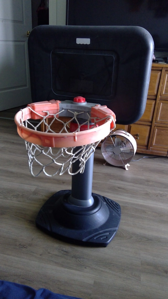 Basketball net and ball (Raptors) for sale. My child has outgrown it. Great for fun play while learning skills. The base can be filled with water or sand for stability. Looking for a new home.