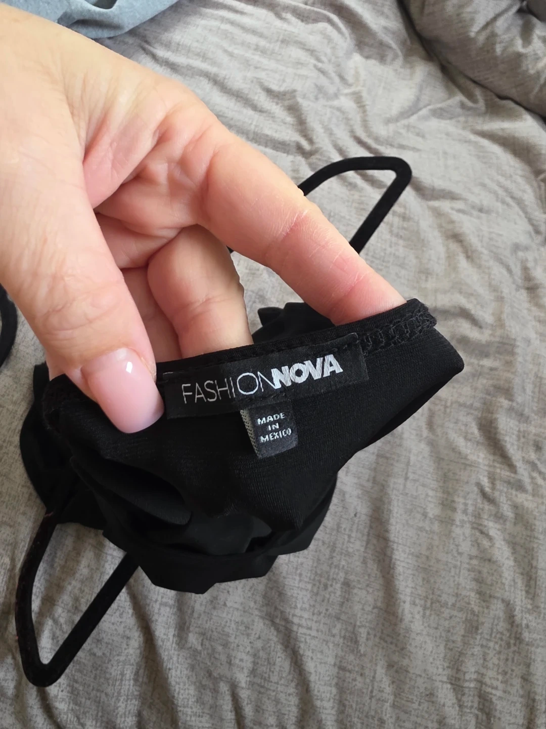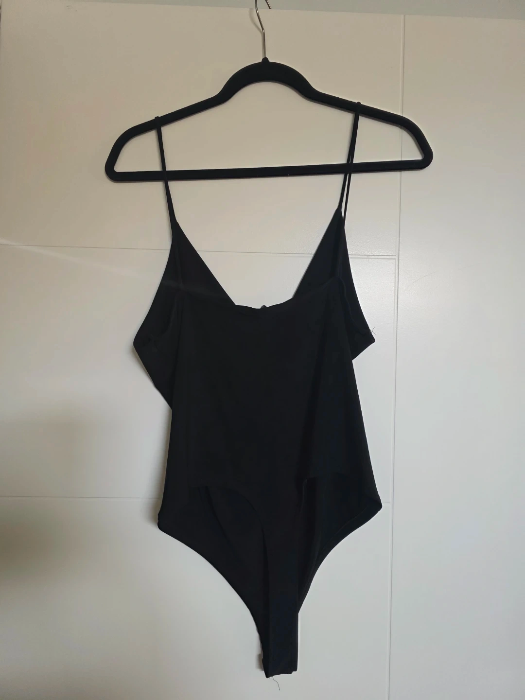 Black spaghetti strap bodysuit from Fashion Nova.