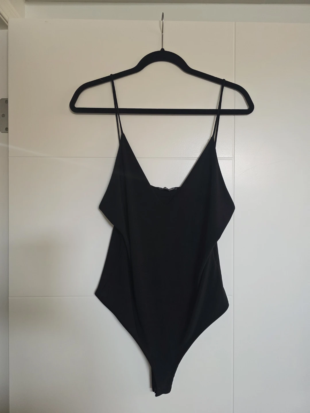 Black spaghetti strap bodysuit from Fashion Nova.