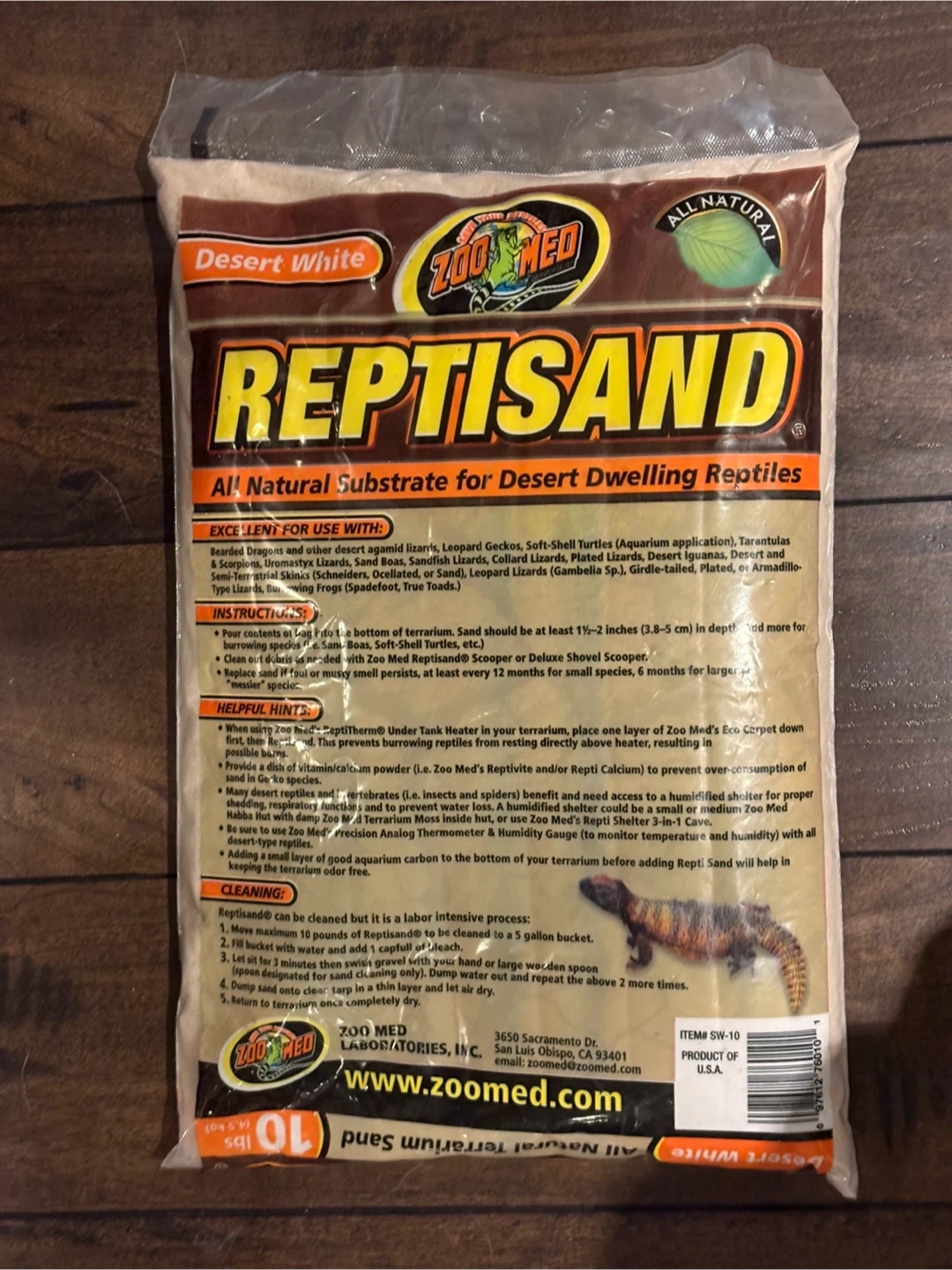 Zoo Med Reptisand is an all-natural terrarium sand perfect for desert-dwelling reptiles. This desert white sand is excellent for use with bearded dragons, leopard geckos, and soft shell turtles. It stimulates natural digging and burrowing behaviour. It's a natural, fine quartz desert sand with no added dyes or chemicals. Comes in a 10 lbs (4.5 kg) bag