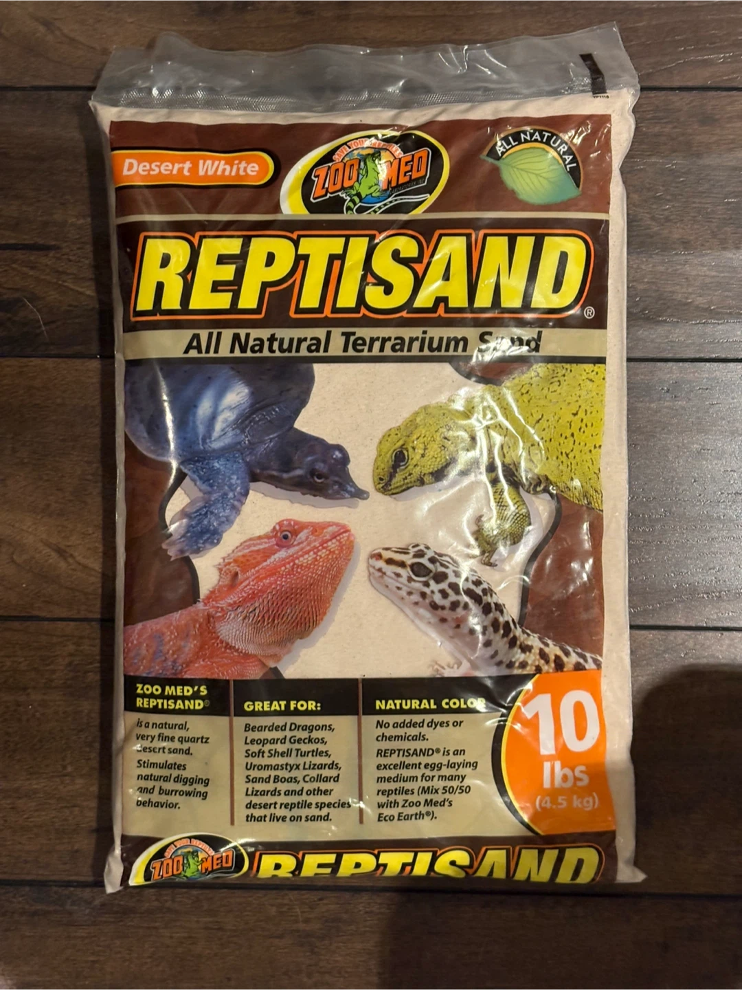 Zoo Med Reptisand is an all-natural terrarium sand perfect for desert-dwelling reptiles. This desert white sand is excellent for use with bearded dragons, leopard geckos, and soft shell turtles. It stimulates natural digging and burrowing behaviour. It's a natural, fine quartz desert sand with no added dyes or chemicals. Comes in a 10 lbs (4.5 kg) bag