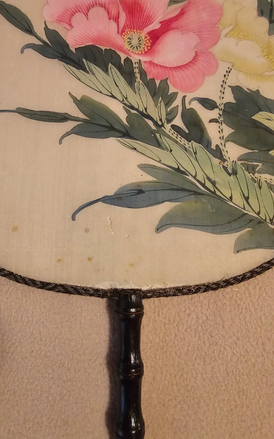 Beautiful Vintage Hand Painted Silk Paddle Fan $3