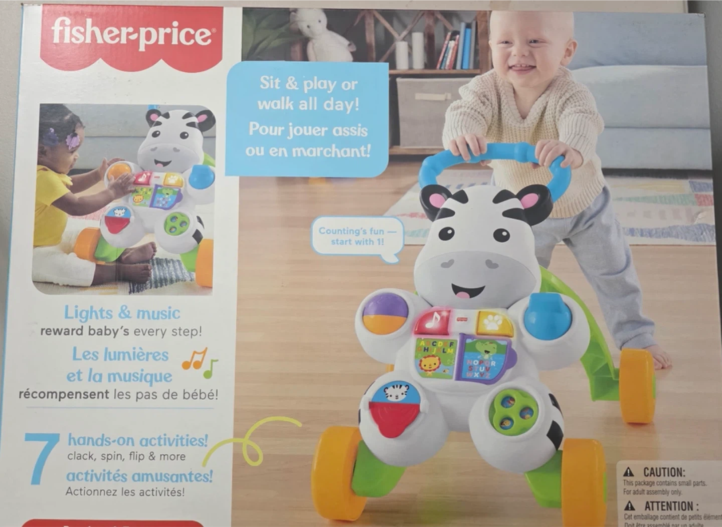 This Fisher-Price zebra walker has 7 hands-on activities for little ones. It plays lights and music to reward every step. Recommended for ages 6 months and up.