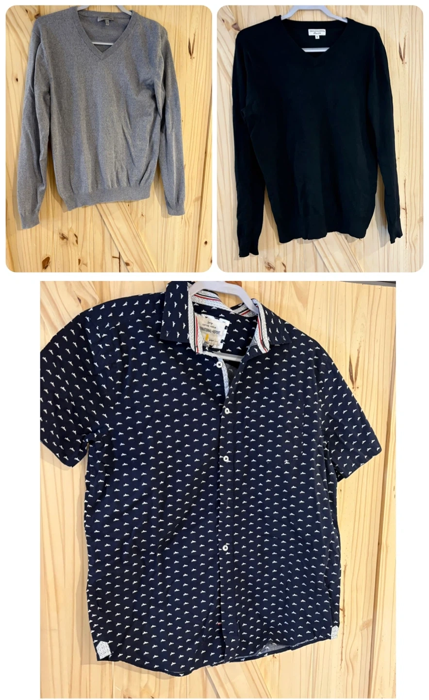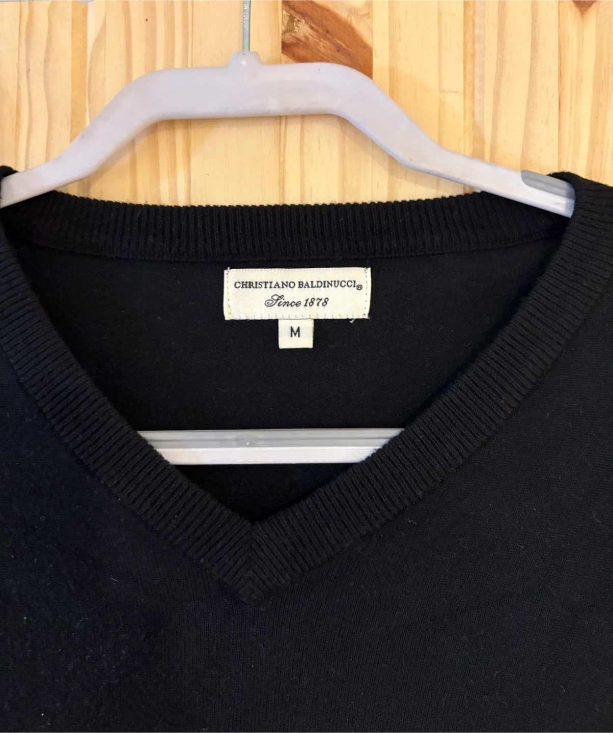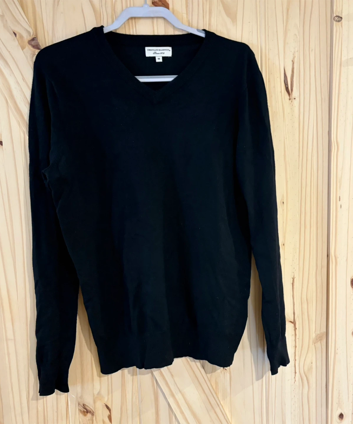 2. classic black V-neck sweater. Perfect for any occasion, it offers both style and comfort. Men’s size M