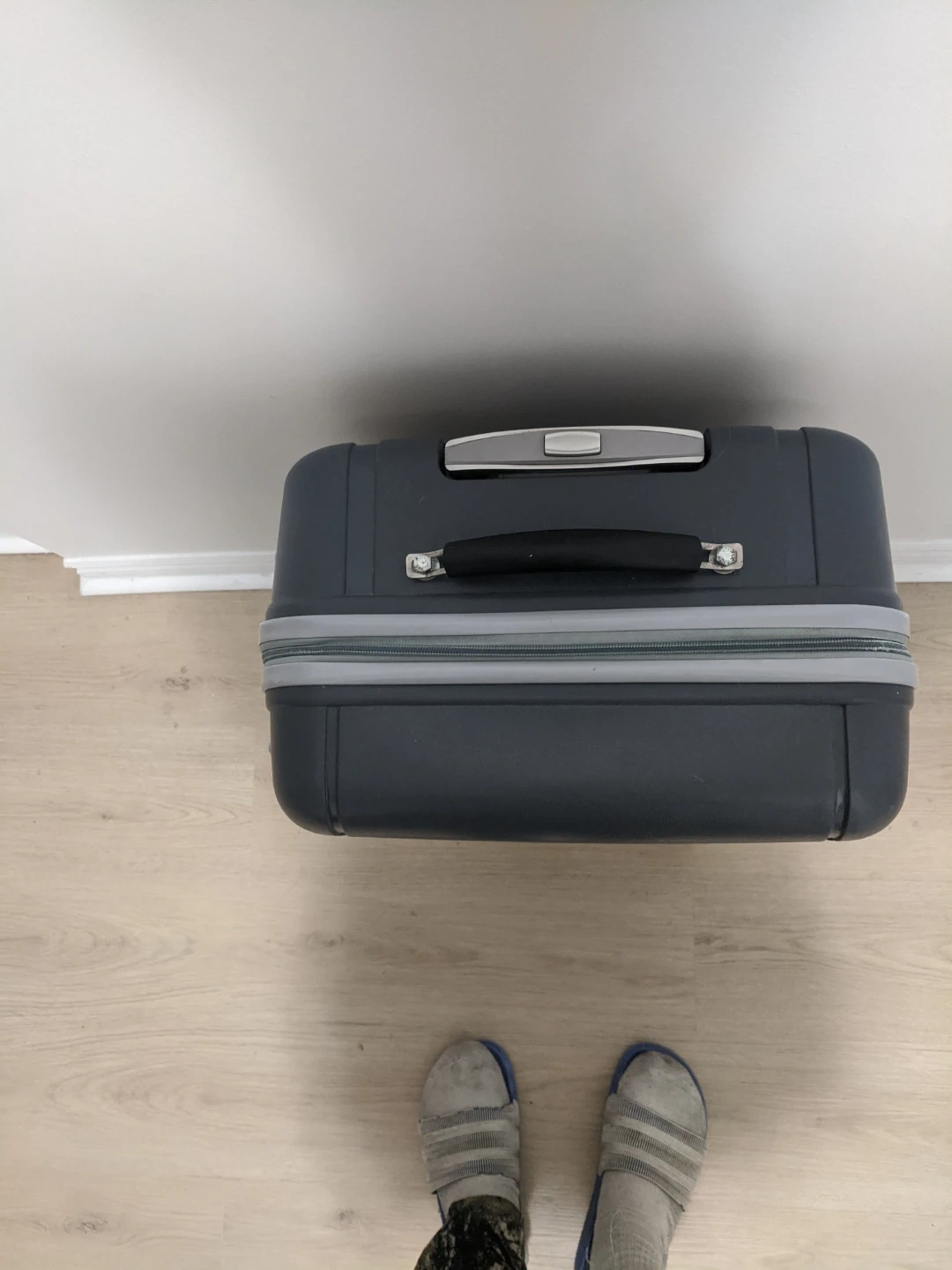 This is a dark grey hardside spinner luggage. It has a retractable handle and four spinner wheels for easy manoeuvring. The exterior is made of a durable material. Pick up at 195 Merton Street Toronto or pick up at Subway station Davisivill. And I can deliver it to your house but you need to pay me another $3. Thanks.