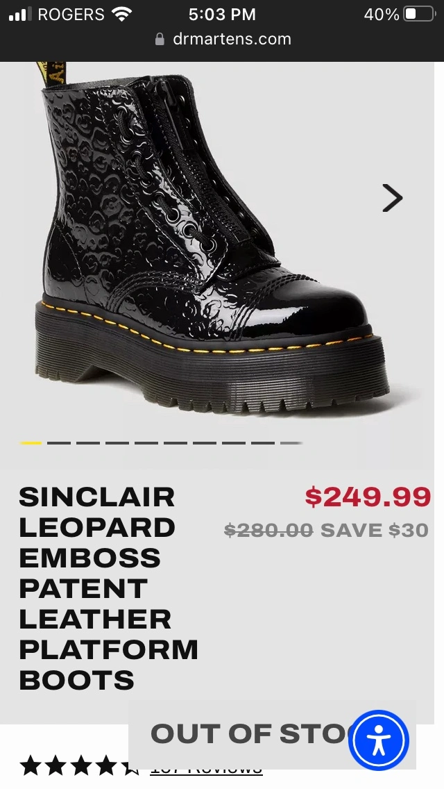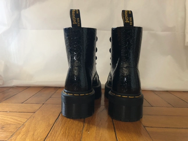 Brand New Black Dr. Martens Sinclair Leopard Emboss Patent Leather Platform Boots - Women’s Size 6