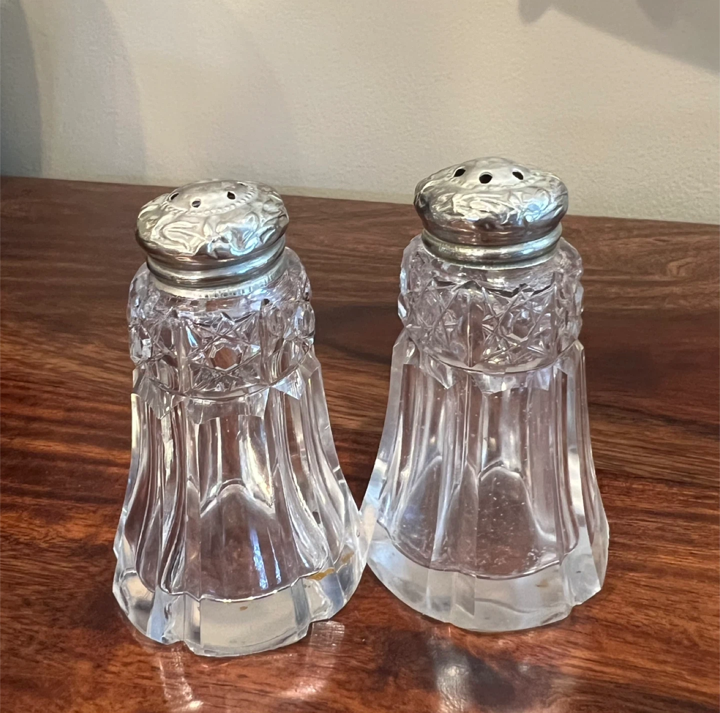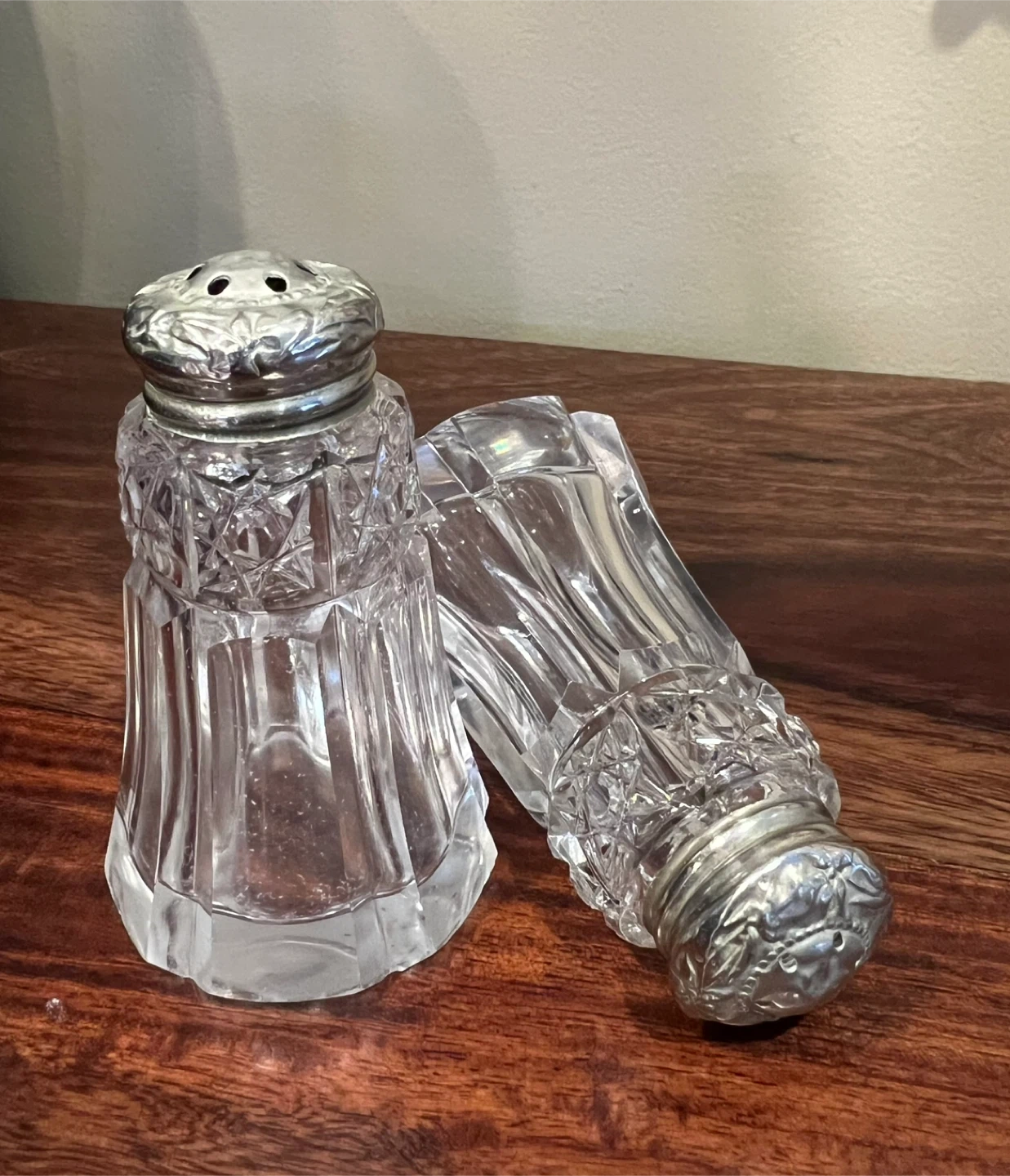 Vintage Crystal and Silver-Tone Salt and Pepper Shakers