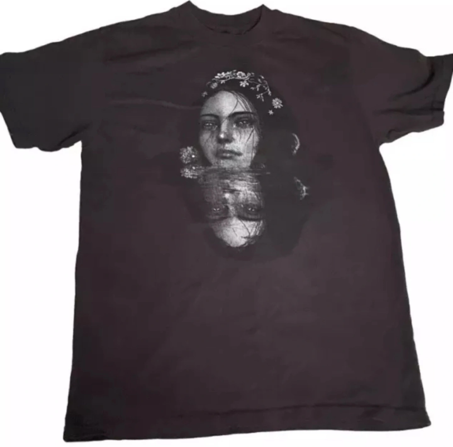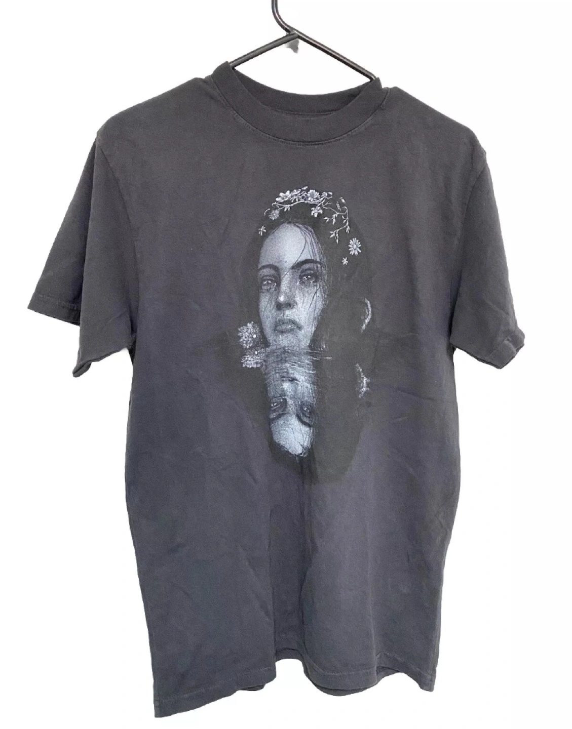 Size S. Black t-shirt with a graphic on the front and tour dates on the back.