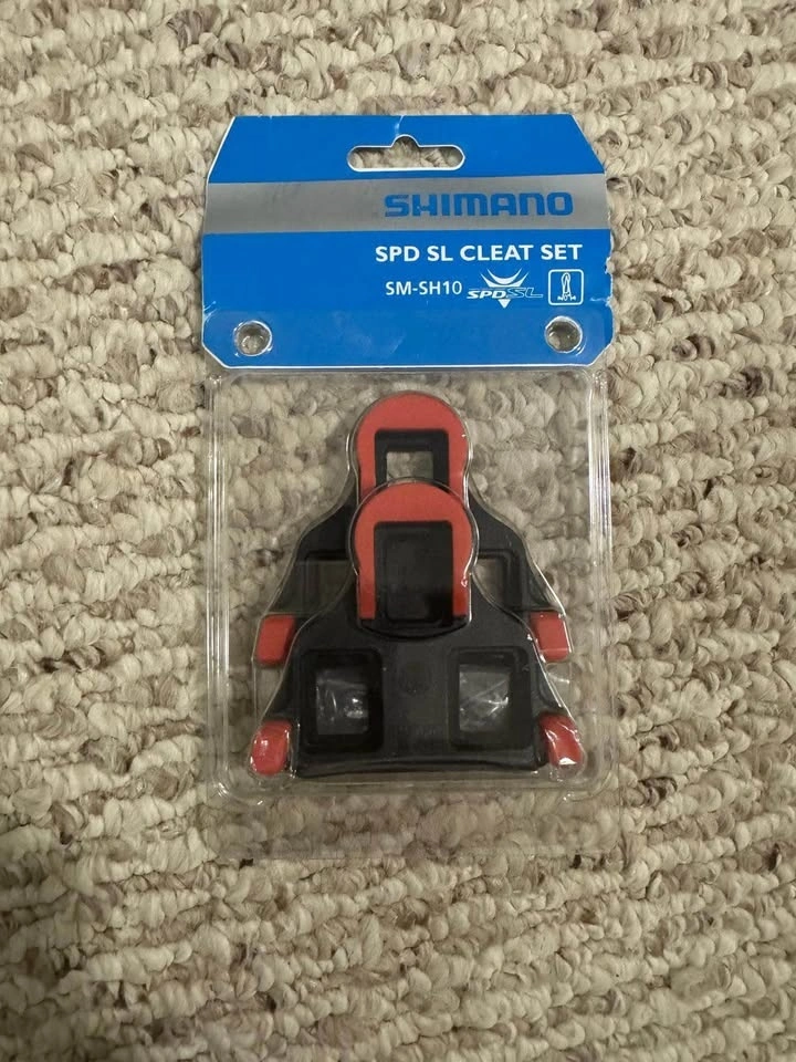 These are SHIMANO SM-SH10 SPD-SL cleats with 0-degree float. They are designed for road cycling pedals.