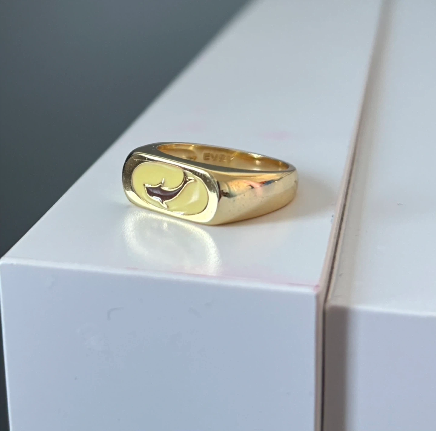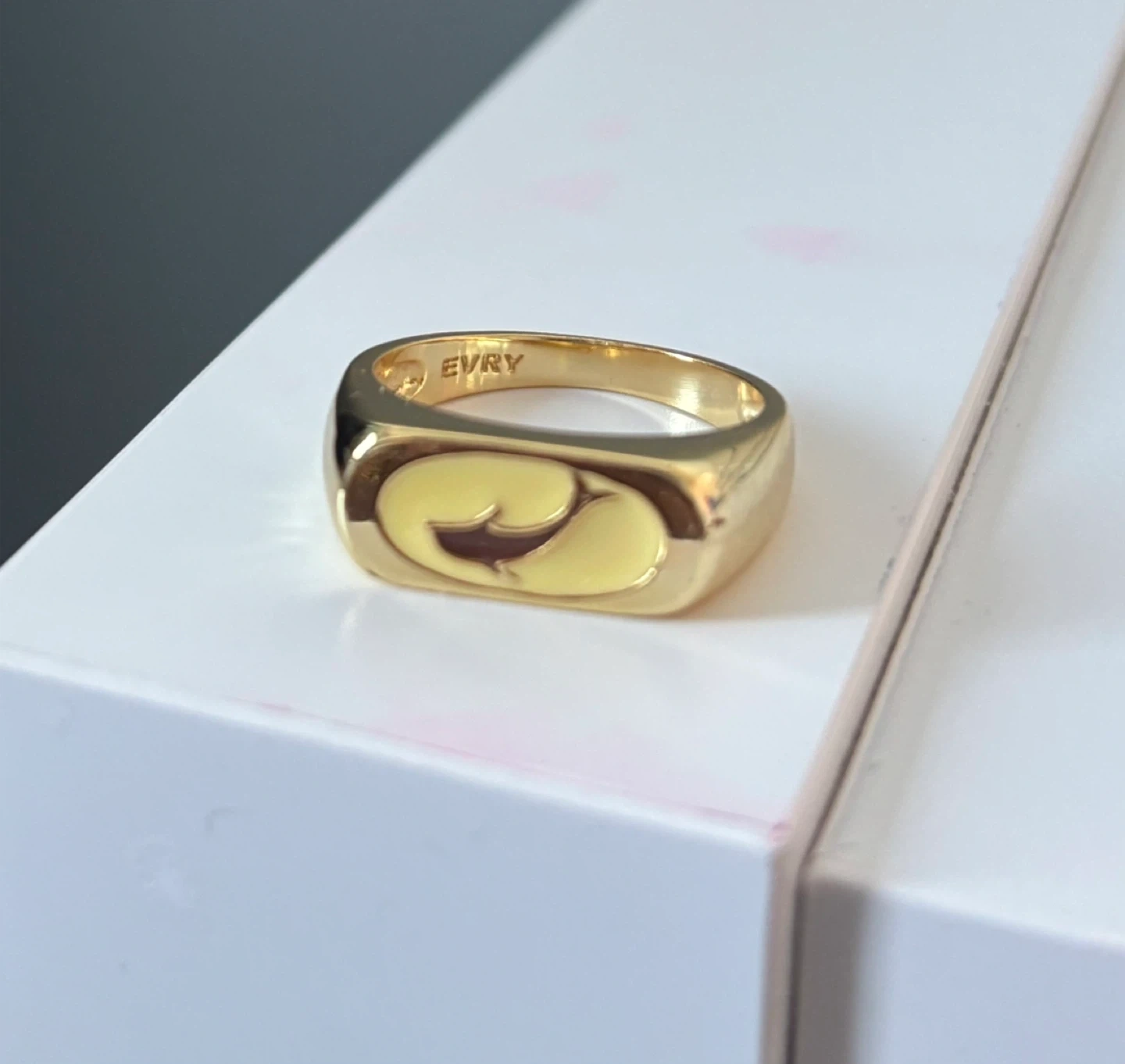 Buy & SellEVRY Gold Signet RingEVRY Gold Signet Ring$10This is an EVRY signet ring in a gold tone. It features a unique yellow and dark inlay design on the face. This ring is a stylish accessory.ConditionGoodSize7BrandEVRYWHERE TO MEETCheck LocationView MapSELLERverifiedsruthiButtonville681 review0 chats·1 favorites·23 viewsSEND CHAT TO SELLERHi sruthi! I’m interested in your listing.Hi sruthi! I’m interested in your listing.Get the Karrot app to chatSign In to chat