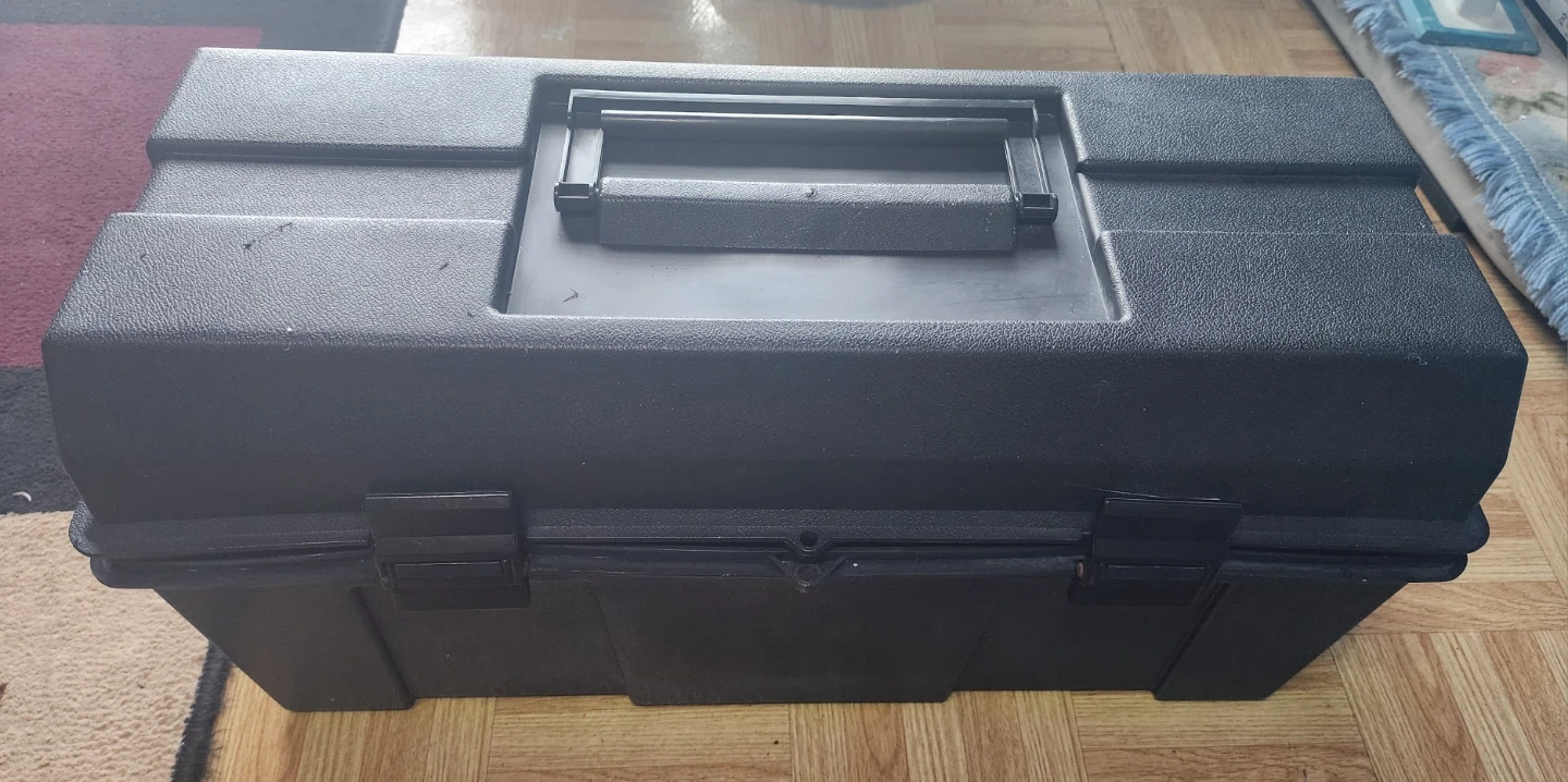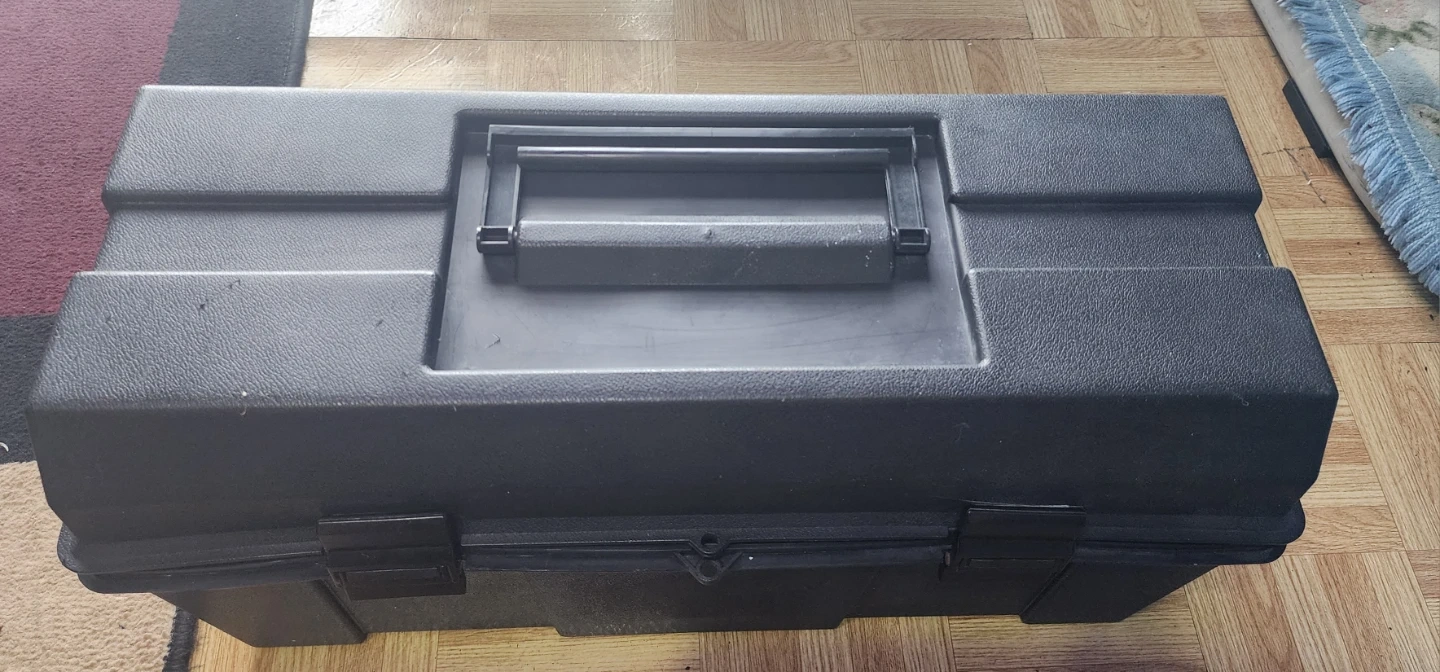 Selling collection of assorted hand tools, including wrenches, sockets, screwdrivers, and drill bits, all organized in a black plastic toolbox. It's a versatile set for various mechanical tasks. The toolbox itself is durable and portable, making it easy to transport your tools.