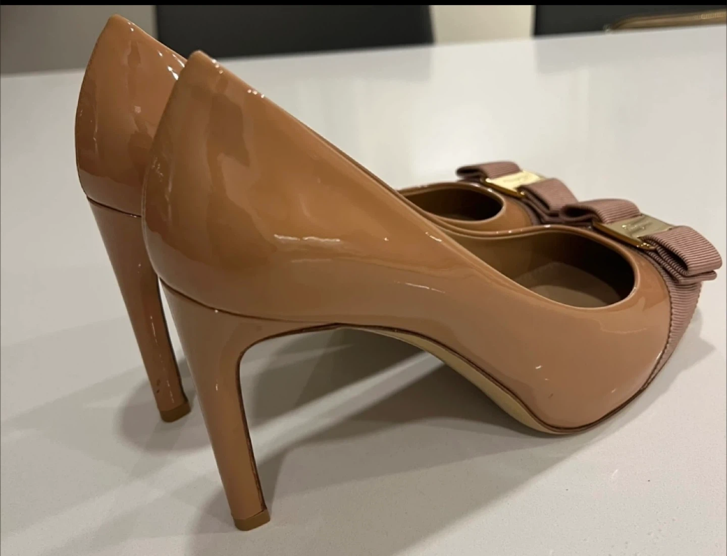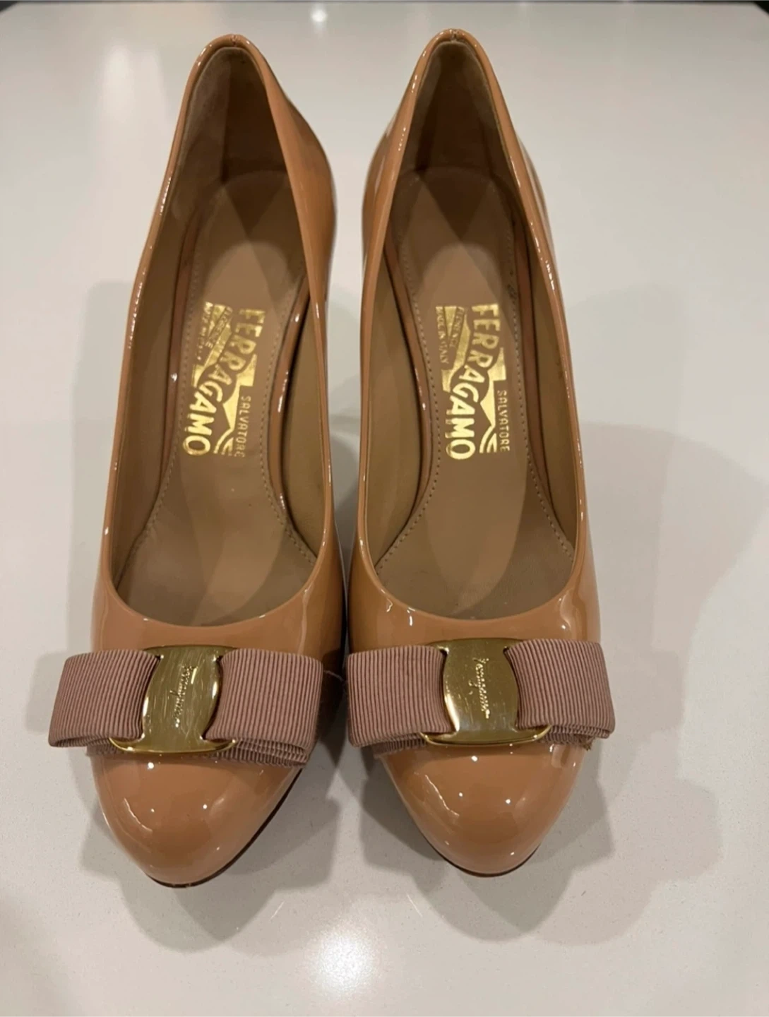 Salvatore Ferragamo Patent Leather Bow Heels Size 6.5B