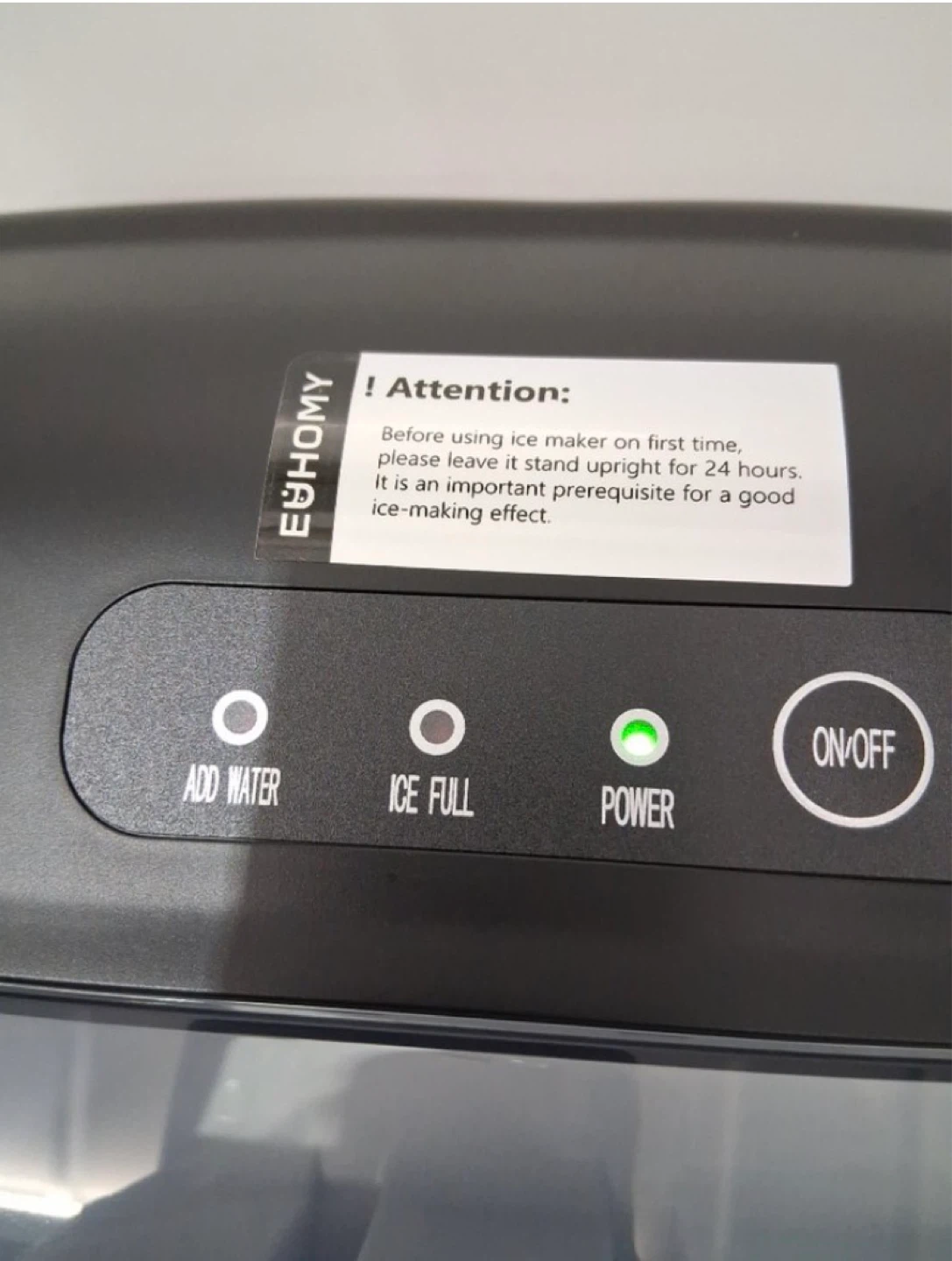 This is a EuHomy portable ice maker. It's black and comes with an ice scoop and manual. It makes ice in as little as 6 minutes!