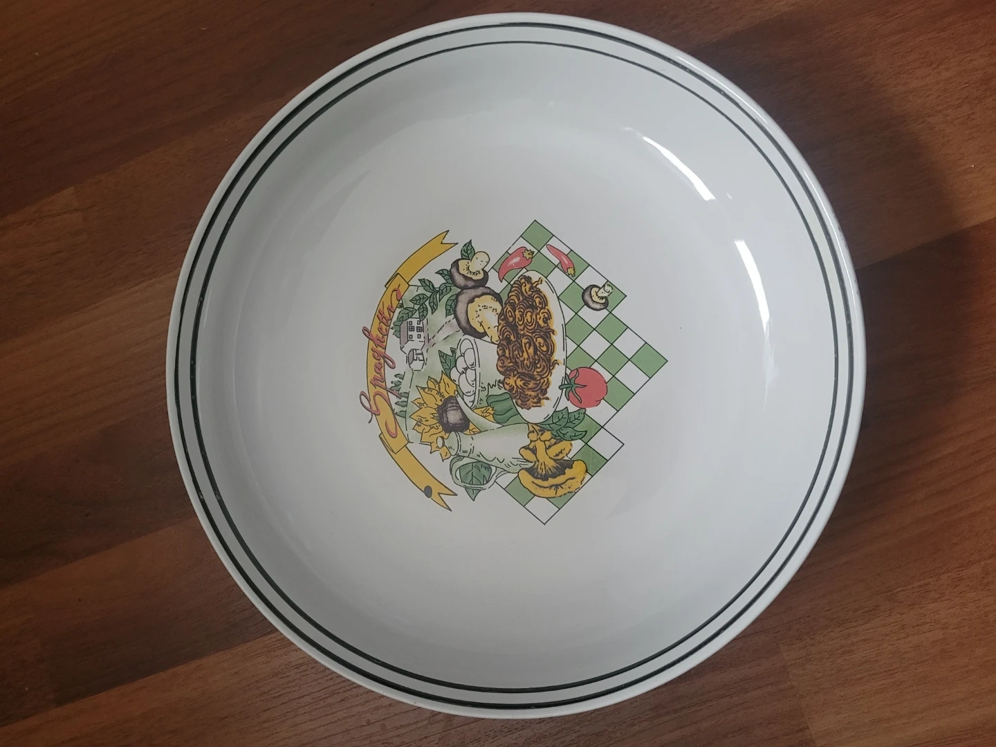 This Villeroy & Boch pasta bowl features a charming vegetable design and is perfect for serving your favourite pasta dishes. The bowl is in used, but good condition, showing some signs of normal wear, which only adds to its vintage appeal.