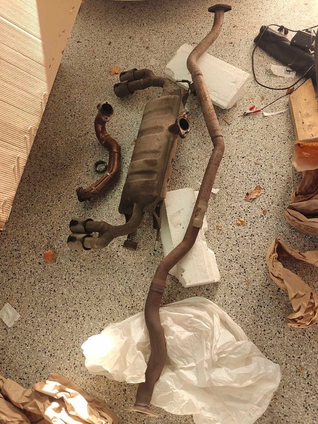 Full cat back exhaust. OEM. Selling to help pay for the new one I got. Zero issues with this one, just got a MagnaFlow instead. Local pickup preferred because the midpipe is one long piece that'll be a pain to ship. Came from a 2017 manual Abarth, but I believe it may fit an automatic too. A great upgrade to a Classica or Lusso Spyder! Sounds great.