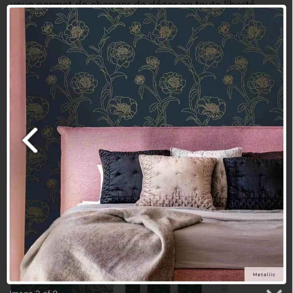 Discover the timeless charm of Tempaper's Peony pattern, a hand-drawn floral peel-and-stick wallpaper featuring elegant peonies with metallic gold outlines on a vibrant navy blue background. This popular design brings a refined touch that suits both young and sophisticated decors, whether classic, contemporary, or heritage. Easy to install and remove without damaging walls, this repositionable wallpaper lets you change your decor with freedom. Suitable for walls, stair risers, furniture, ceilings, and bathrooms. Best applied to primed and painted surfaces with an eggshell, satin, or semi-gloss finish.