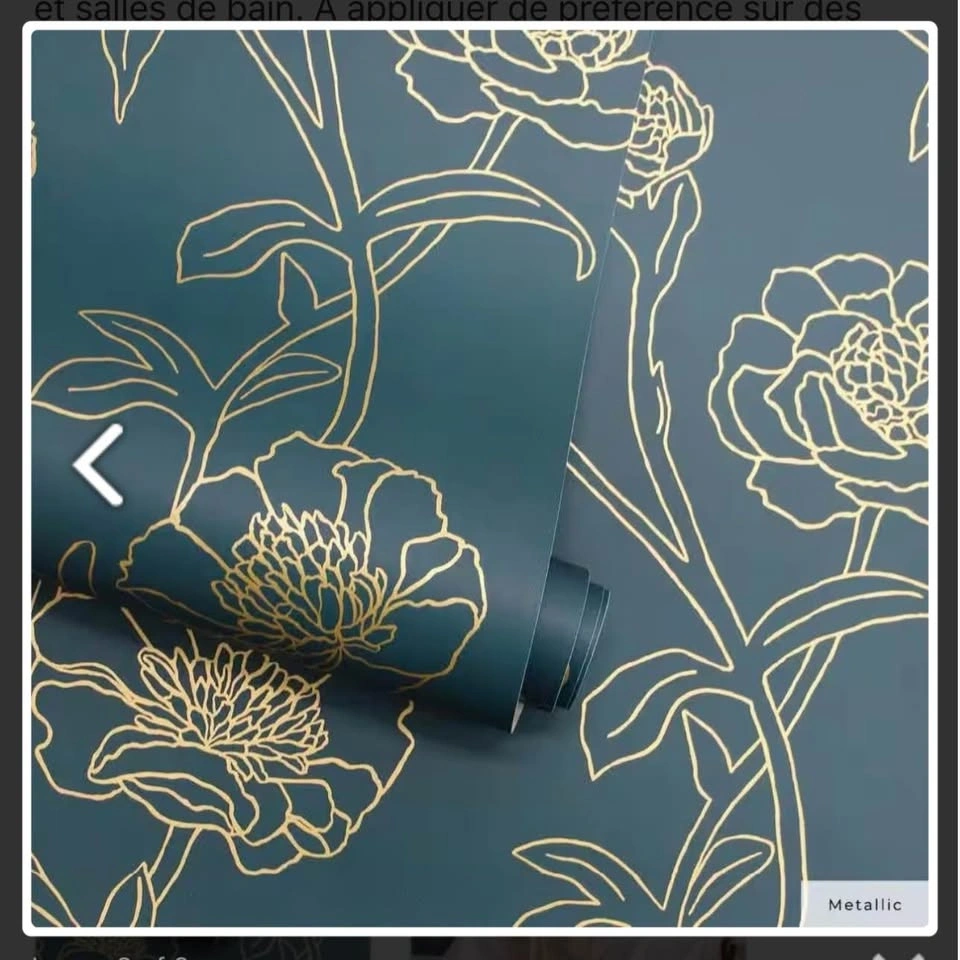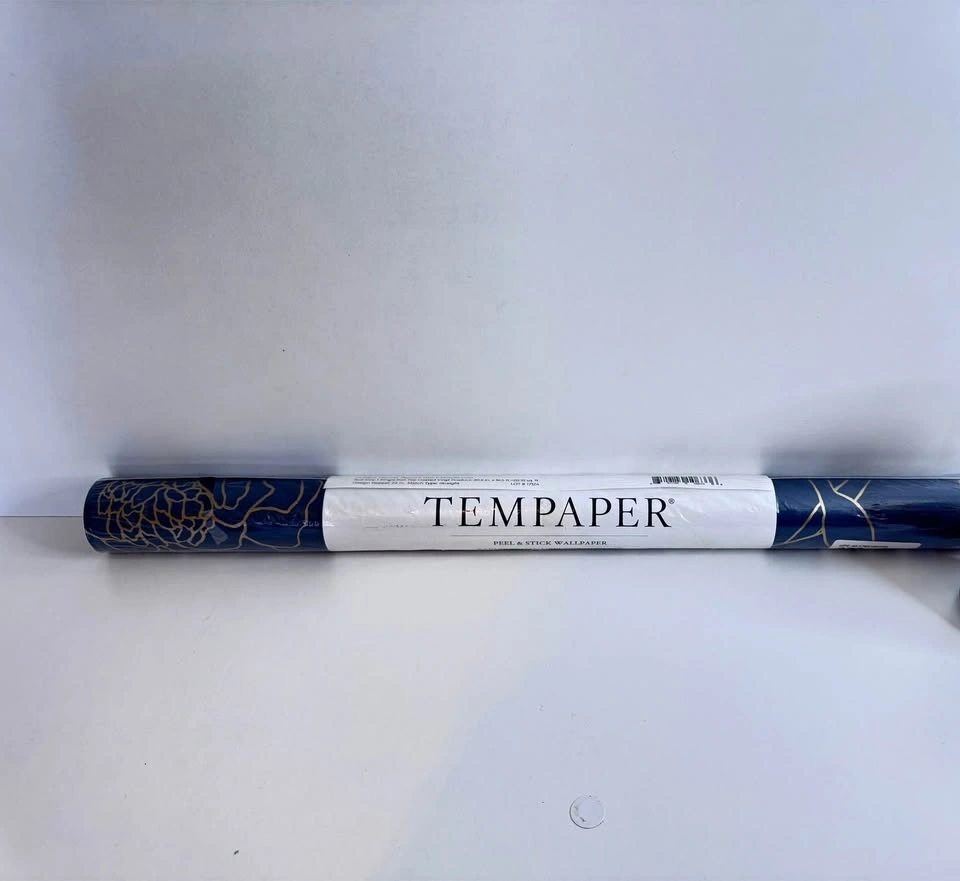 Discover the timeless charm of Tempaper's Peony pattern, a hand-drawn floral peel-and-stick wallpaper featuring elegant peonies with metallic gold outlines on a vibrant navy blue background. This popular design brings a refined touch that suits both young and sophisticated decors, whether classic, contemporary, or heritage. Easy to install and remove without damaging walls, this repositionable wallpaper lets you change your decor with freedom. Suitable for walls, stair risers, furniture, ceilings, and bathrooms. Best applied to primed and painted surfaces with an eggshell, satin, or semi-gloss finish.