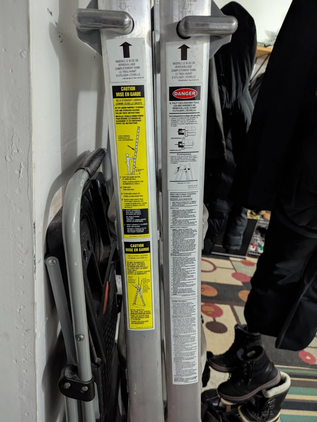 This is a multi-position ladder. It's made of aluminum. This ladder is designed for various tasks around the home.
