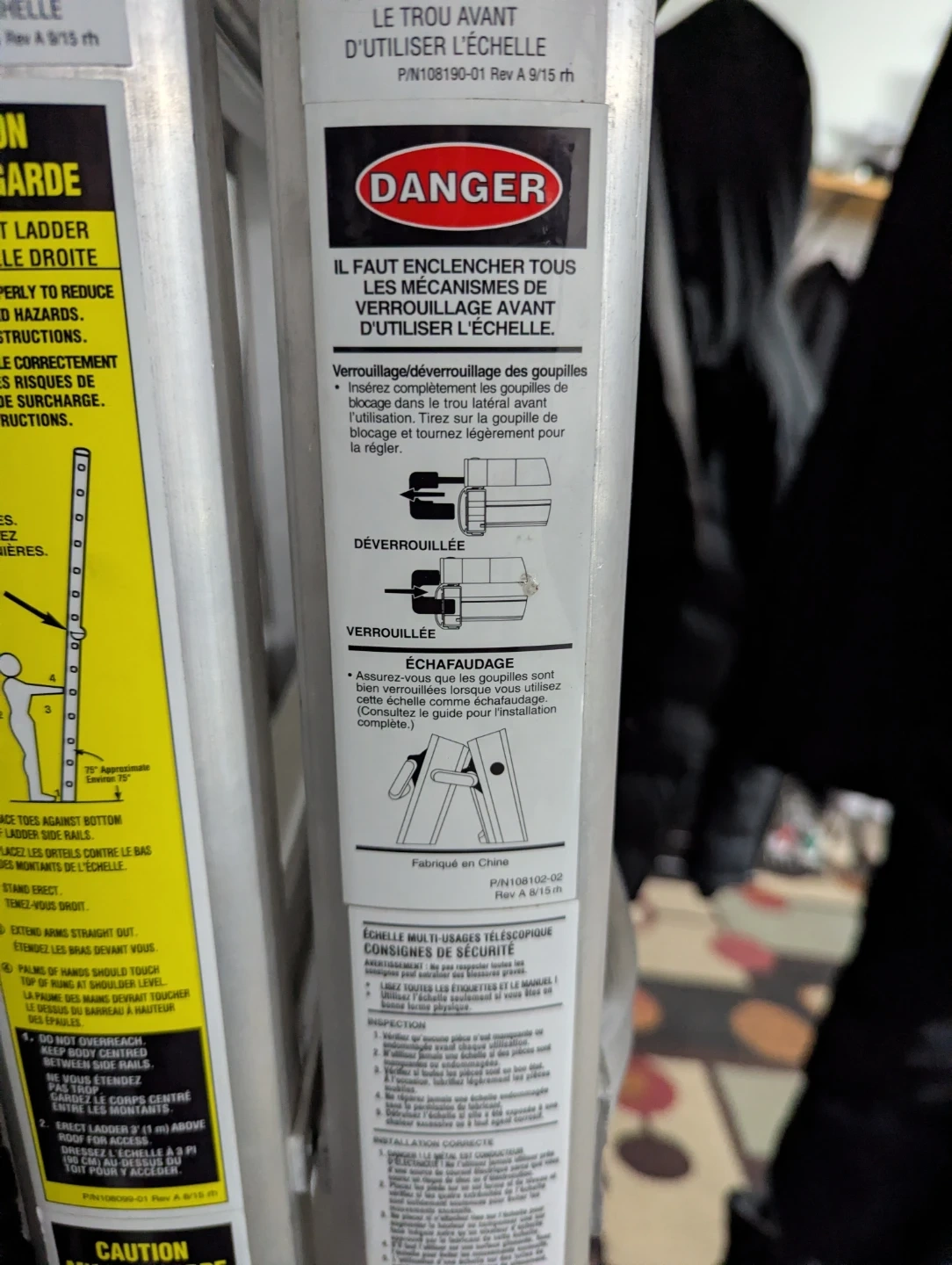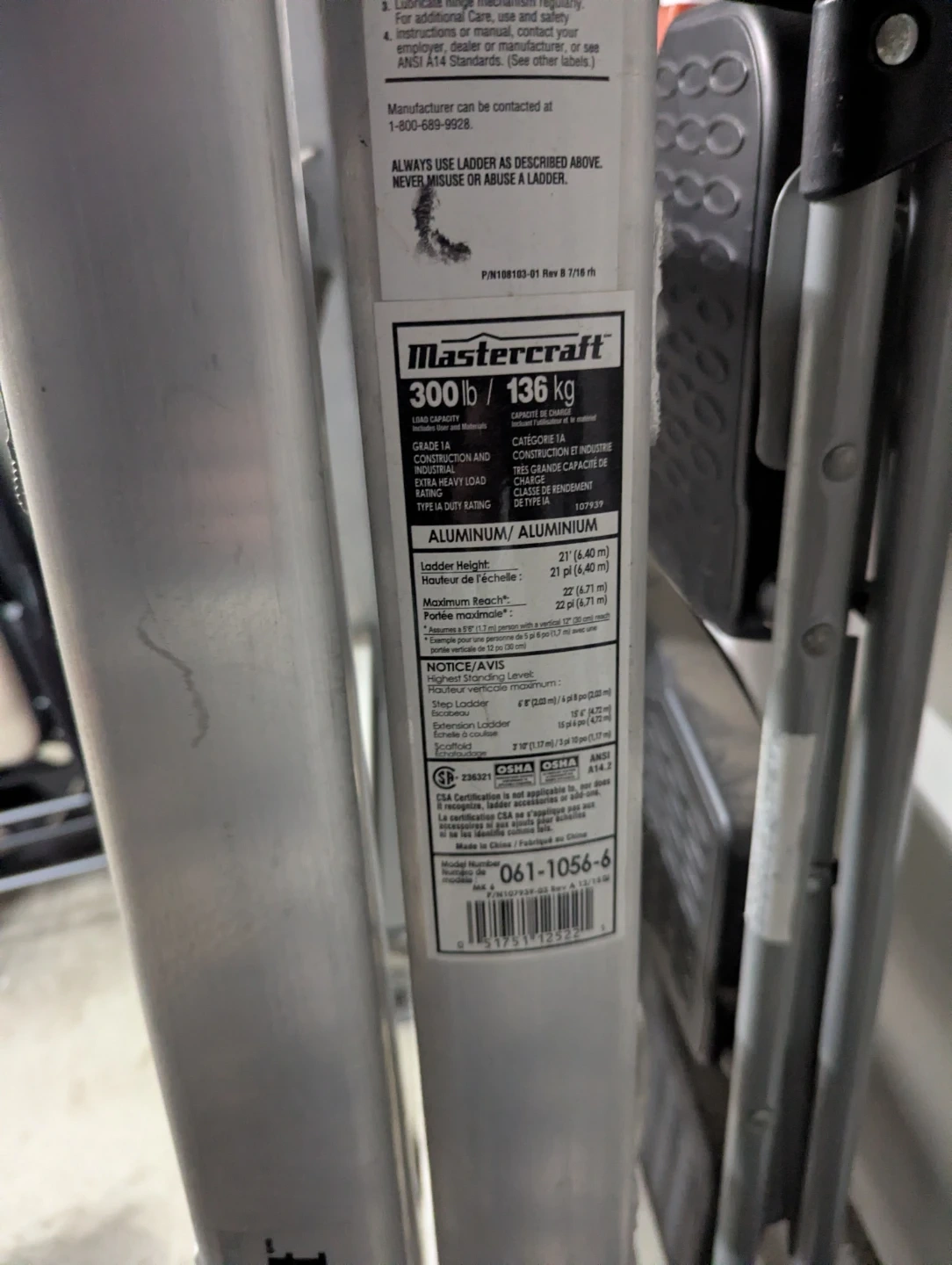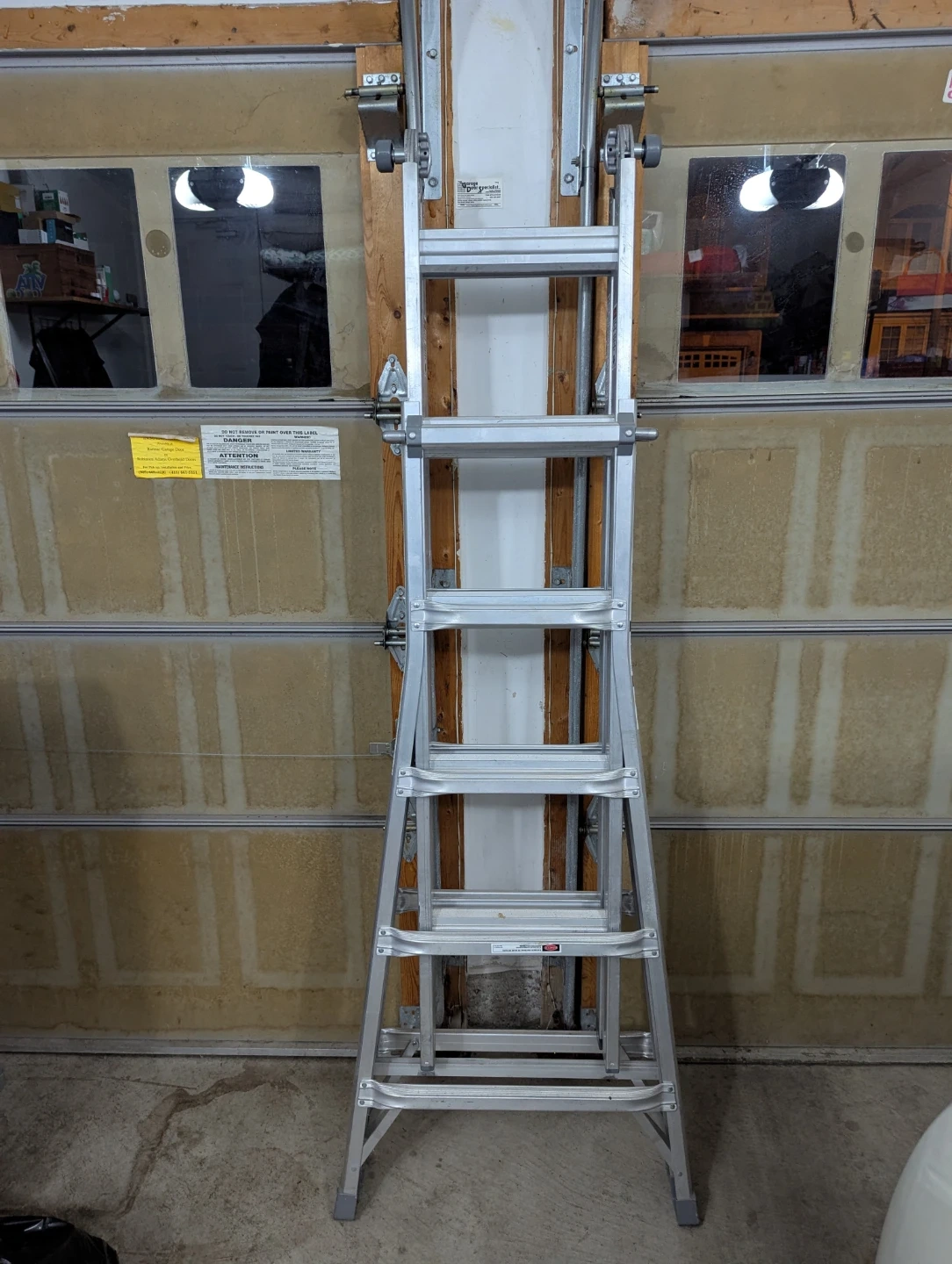 This is a multi-position ladder. It's made of aluminum. This ladder is designed for various tasks around the home.