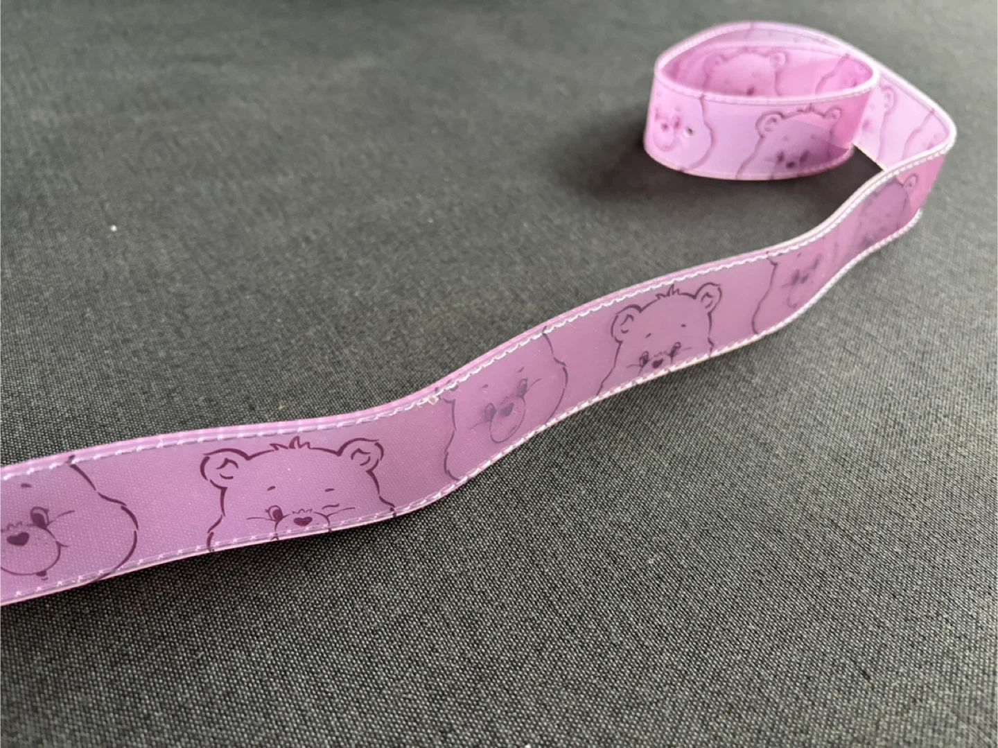 This is a cute PVC kids belt with a fun bear design! It's perfect for adding a touch of whimsy to any outfit. The belt is made of 100% PVC and measures 100cm x 3.5cm.
