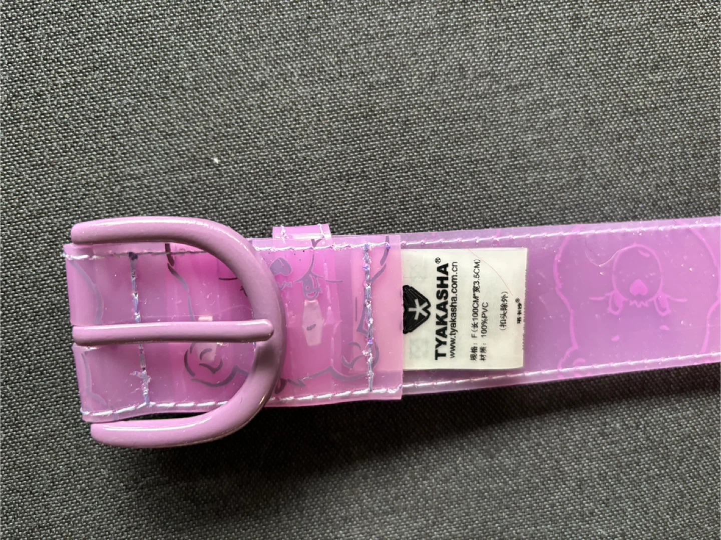 This is a cute PVC kids belt with a fun bear design! It's perfect for adding a touch of whimsy to any outfit. The belt is made of 100% PVC and measures 100cm x 3.5cm.