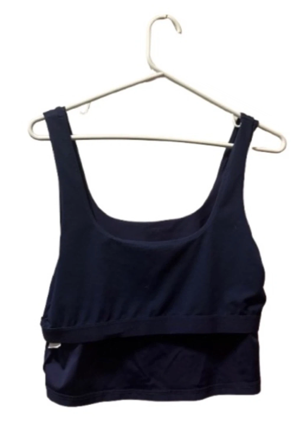 Classic Fabletics black sports bra in a smooth, stretchy performance fabric. Features a scoop neckline, wide straps, and supportive fit — perfect for workouts, yoga, or everyday comfort. Designed in California and made with a nylon‑elastane blend for a soft, flexible feel.