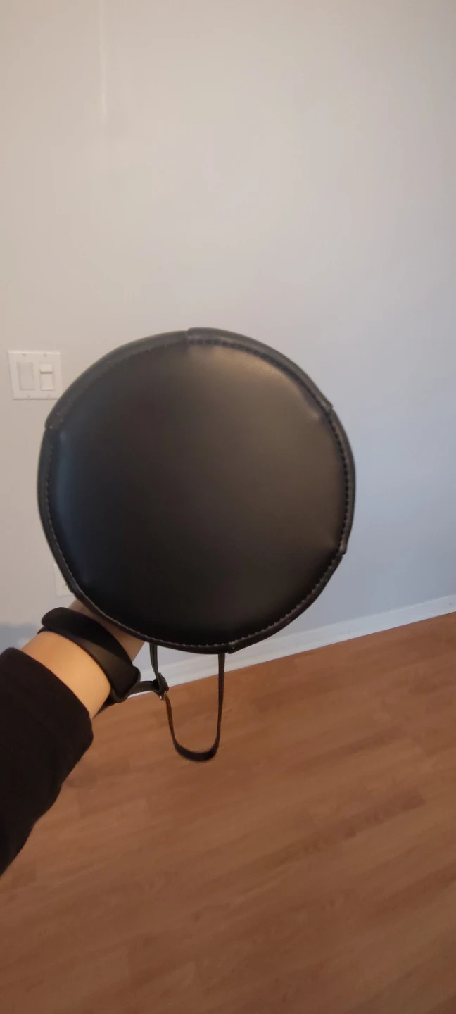 This is a stylish black faux leather bucket bag. It's a versatile accessory with a top handle and a shoulder strap. The interior is designed with compartments.