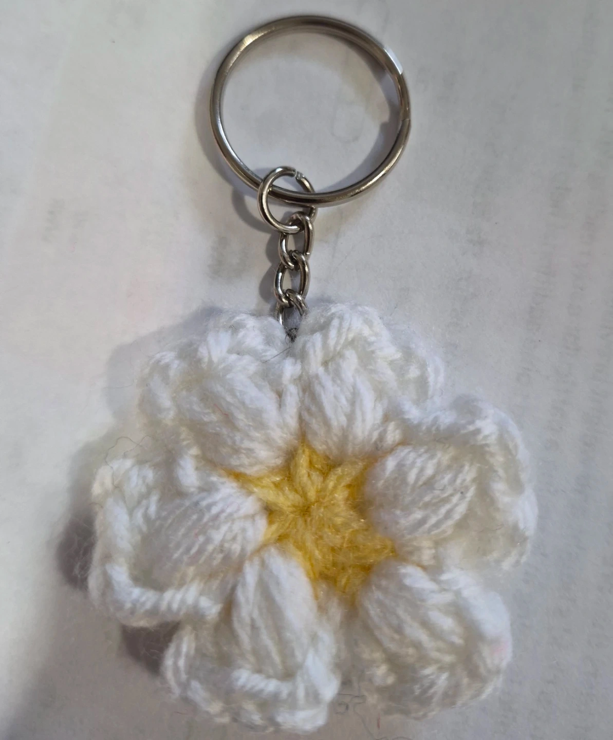 Buy & SellCrocheted Flower KeychainCrocheted Flower Keychain$5White and yellow crocheted flower keychain. Made with yarn and metal keyring. Adds a lovely touch to your keys or bag!ConditionNewWHERE TO MEETCheck LocationView MapSELLERAmanConcord151 review0 chats·0 favorites·1 viewsSEND CHAT TO SELLERHi Aman! I’m interested in your listing.Hi Aman! I’m interested in your listing.Get the Karrot app to chatSign In to chat
