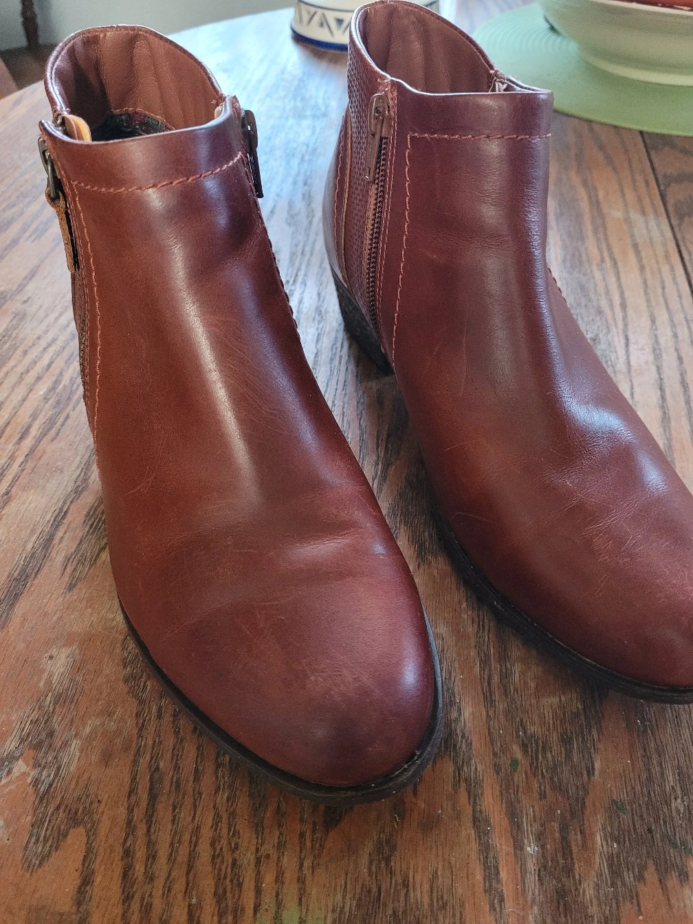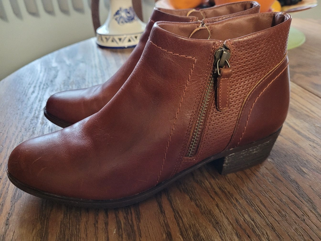 These brown leather ankle boots are in great condition and ready for a new home! They feature a stylish side zipper detail. Perfect for adding a touch of sophistication to any outfit
