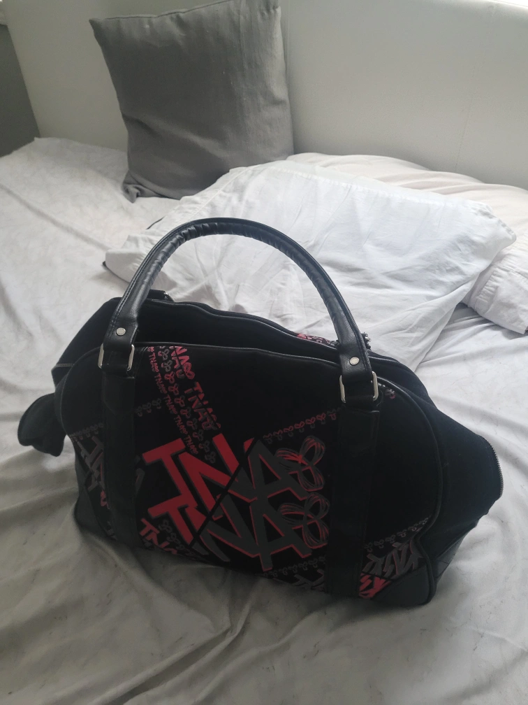 Selling a TNA tote bag in black! It's in great condition and perfect for carrying all your essentials. The interior has multiple pockets to keep things organized