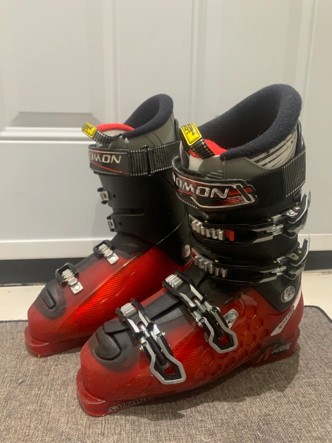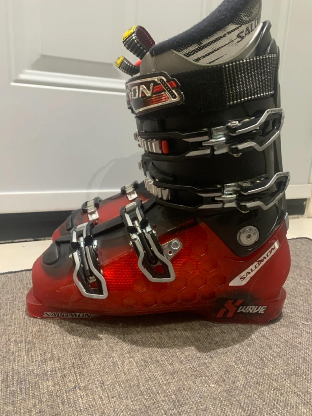 Selling a pair of Salomon X Wave 9.0 ski boots. They are in great shape and ready for the slopes! The boots are black and red.
