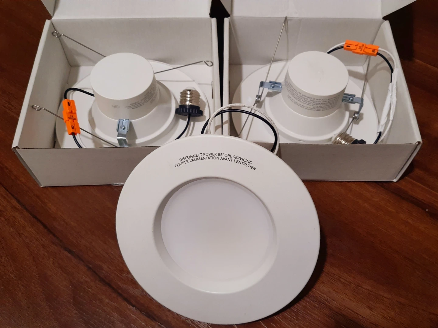 Set of three white LED spotlights.