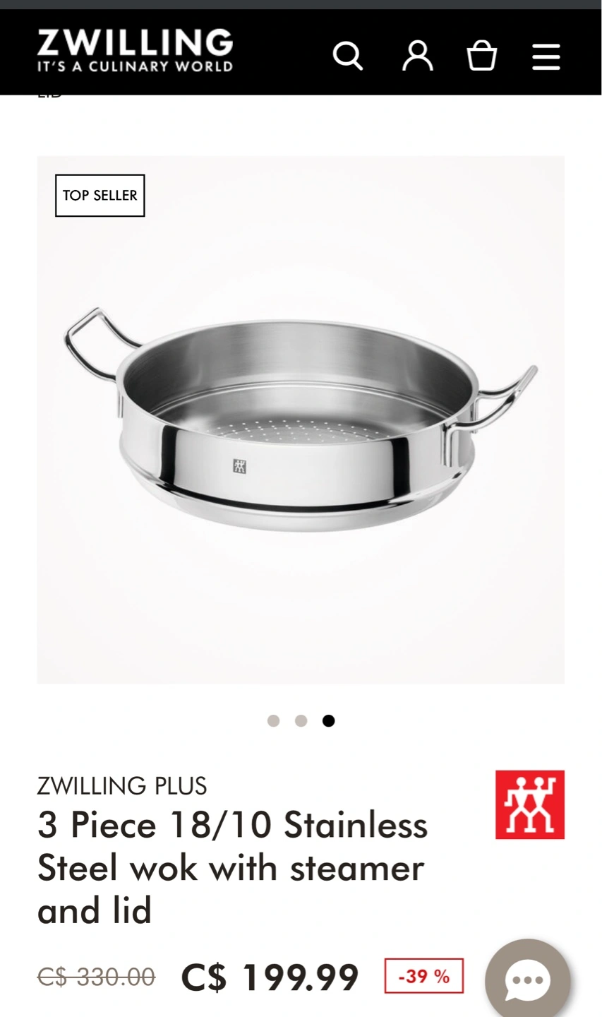 Zwilling Plus 3-Piece Stainless Steel Wok+Steamer+Lid