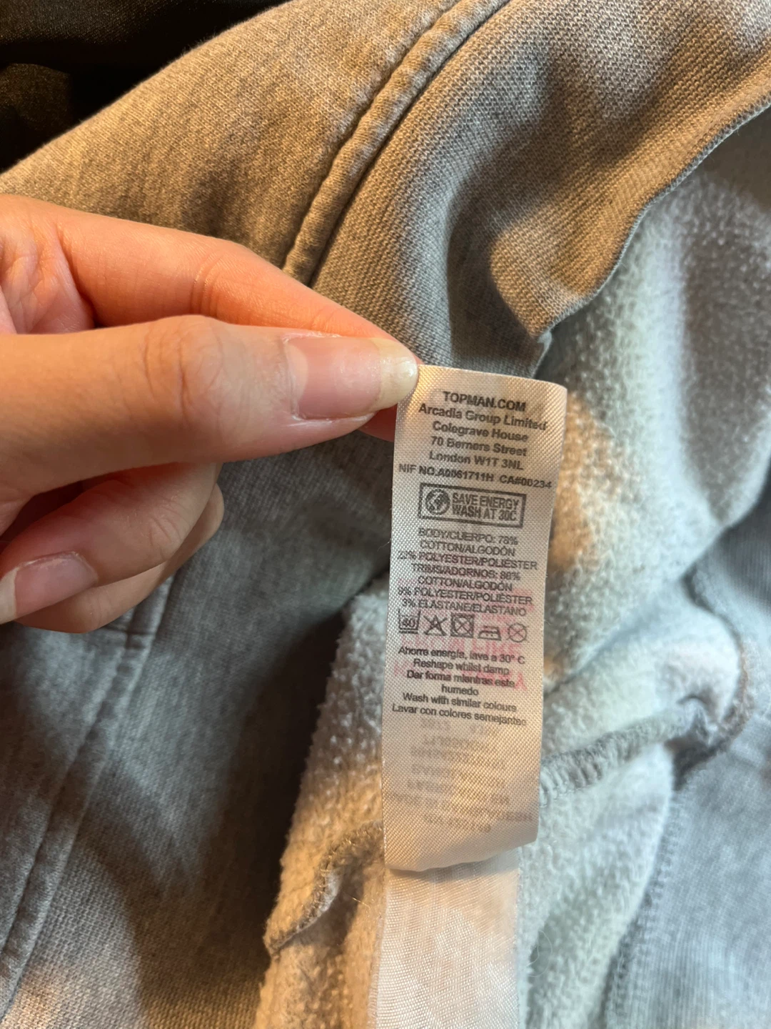 Used condition, minor stains above front pocket and left sleeve. See photos for reference.