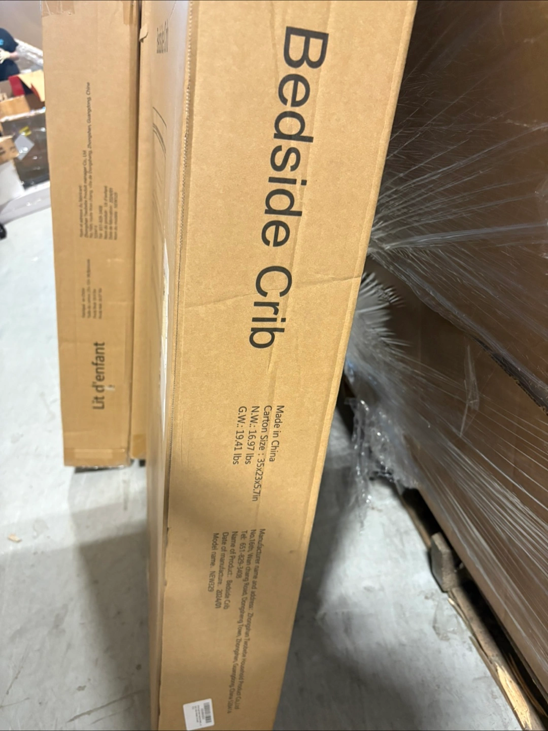 Selling a bedside crib in dark grey. It's still in its original box! Perfect for keeping your little one close by during the night. Please note it is a lit d'enfant.