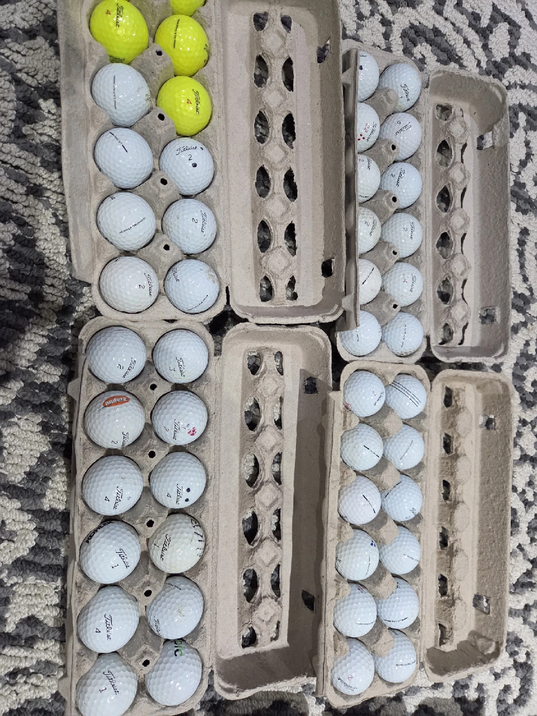 Selling a mixed set of Titleist golf balls. Includes a mix of models and colours, as shown in the photos. Great for practice or a casual round! 100 balls Pro V1