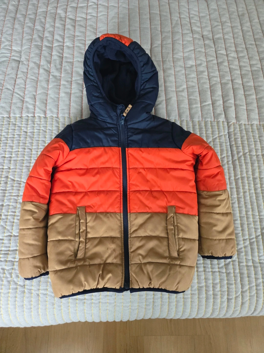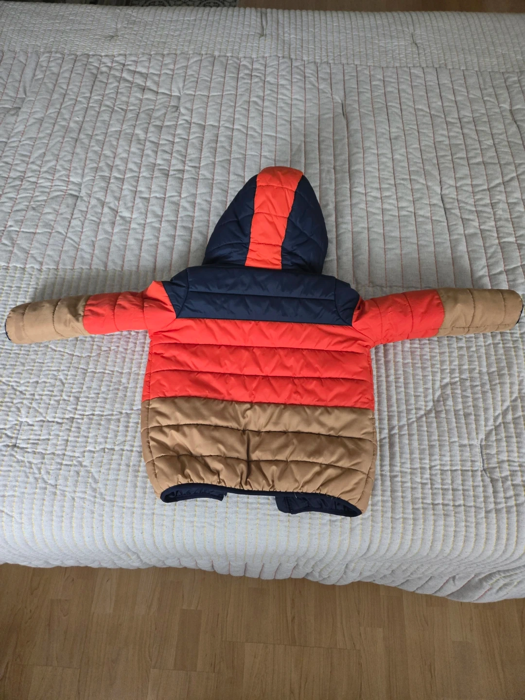 Here's a super cute puffer jacket from The Children's Place for boys! It's a size small and features a stylish colour-block design with navy, orange, and tan. Perfect for keeping your little one warm and cozy during the colder months. Cash only! Message if you interested!