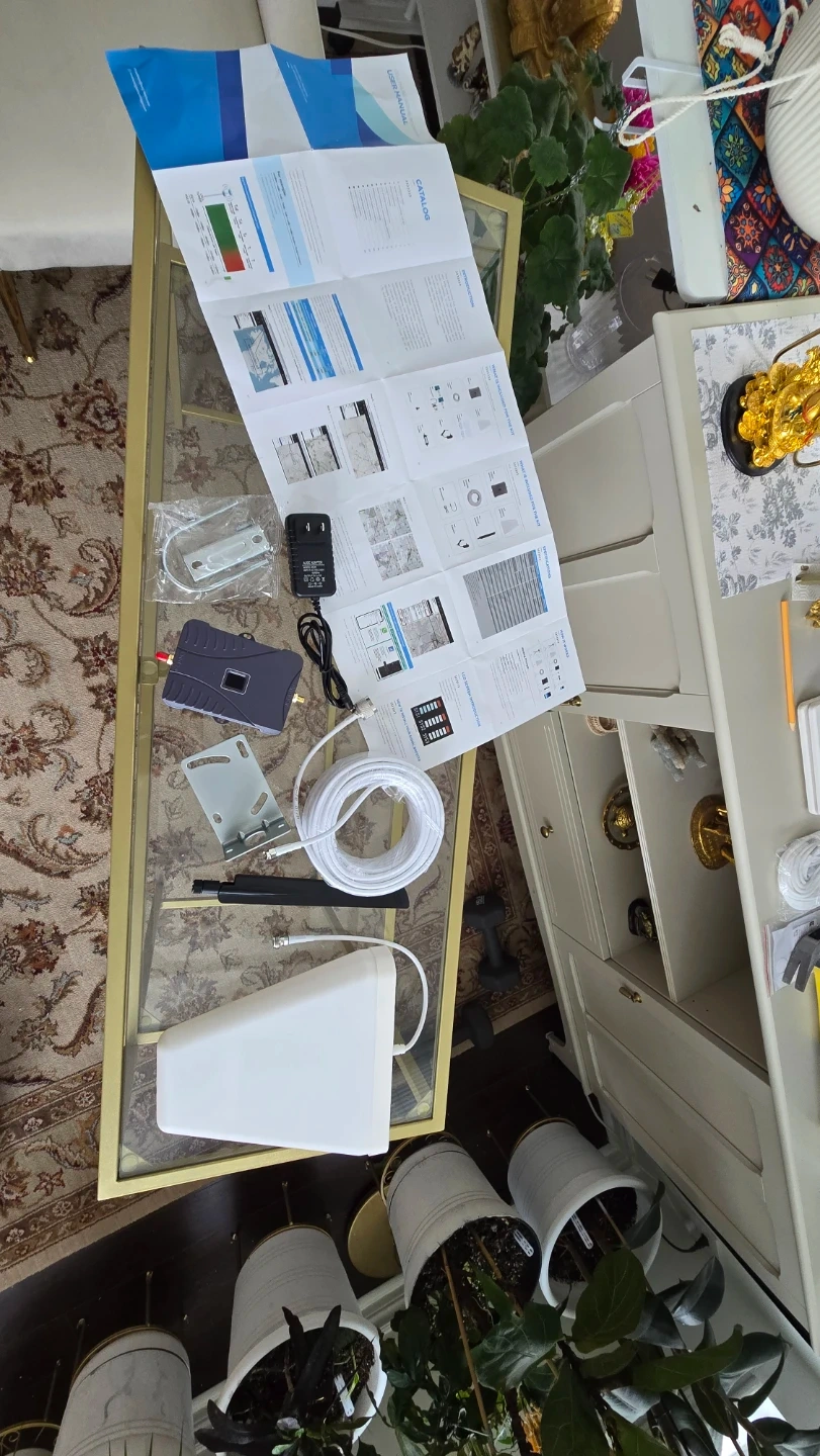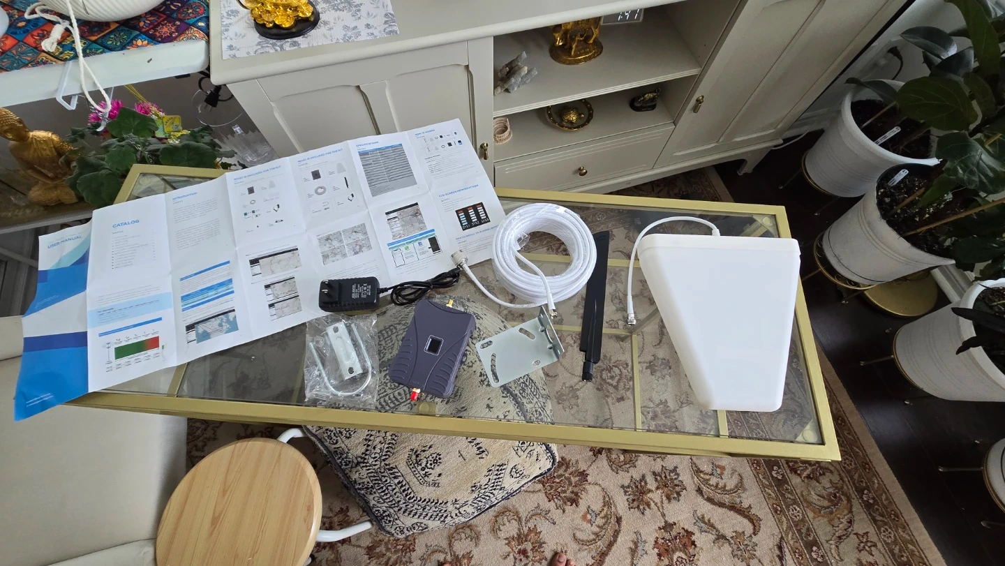This kit includes an indoor antenna, outdoor antenna, outside cable, adapter, and accessories. It can cover up to 2500 sq ft.