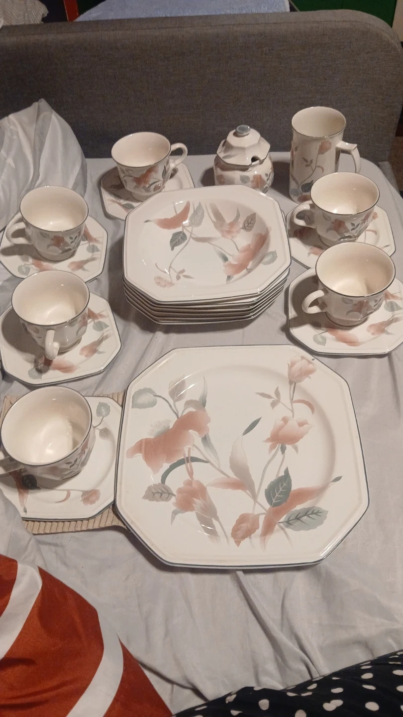 Selling a Tempo Eighty Mikasa dinnerware set. It's a beautiful set with a floral design. Perfect for everyday use or special occasions🥕