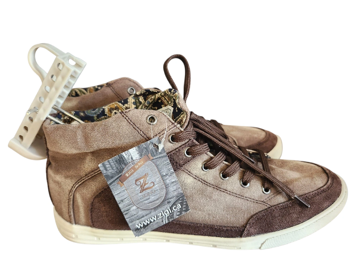 Selling a pair of Zigi Soho high-top sneakers in a nice brown colour. They have a unique design and are in good condition. Great for adding a bit of style to your everyday look!